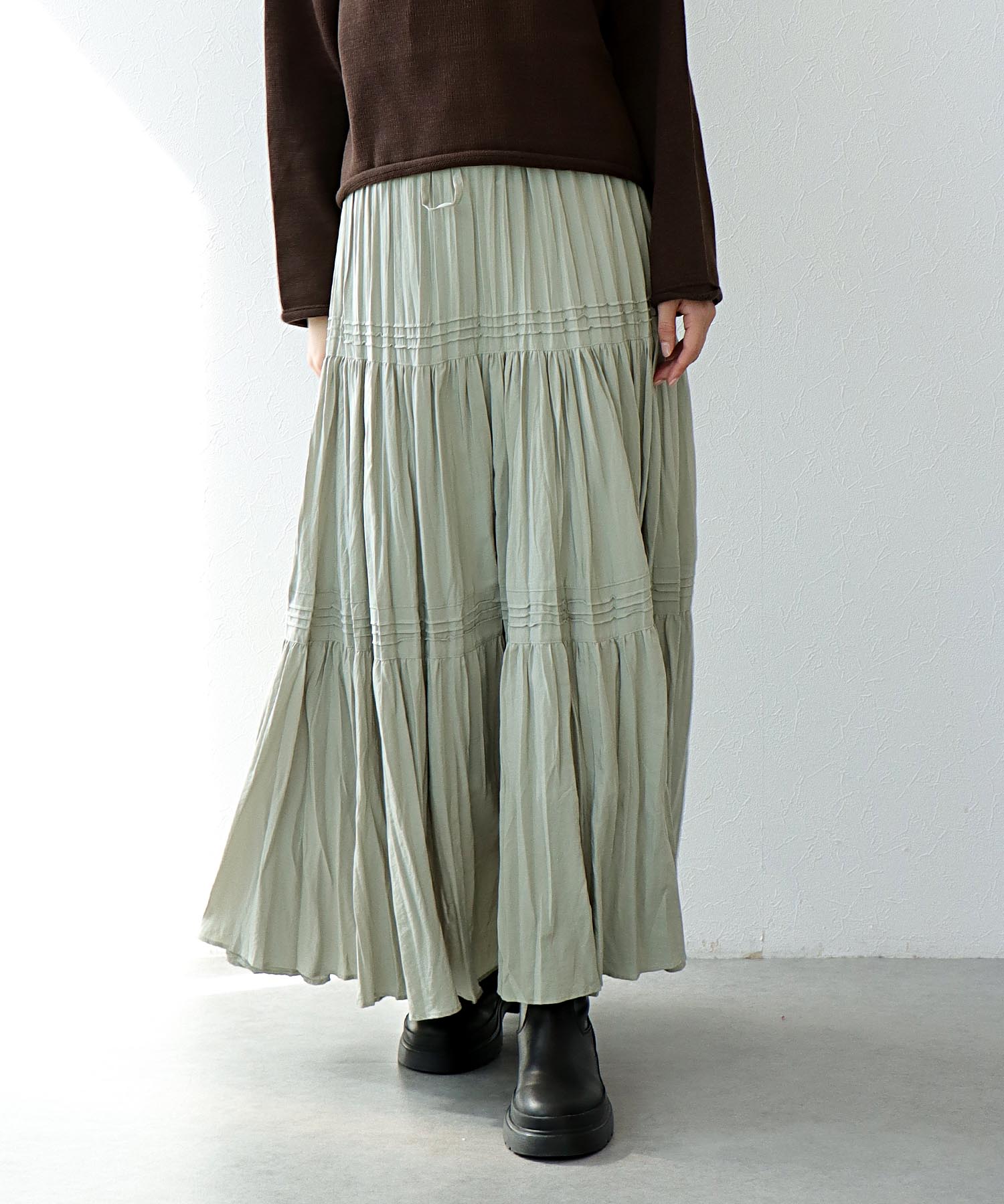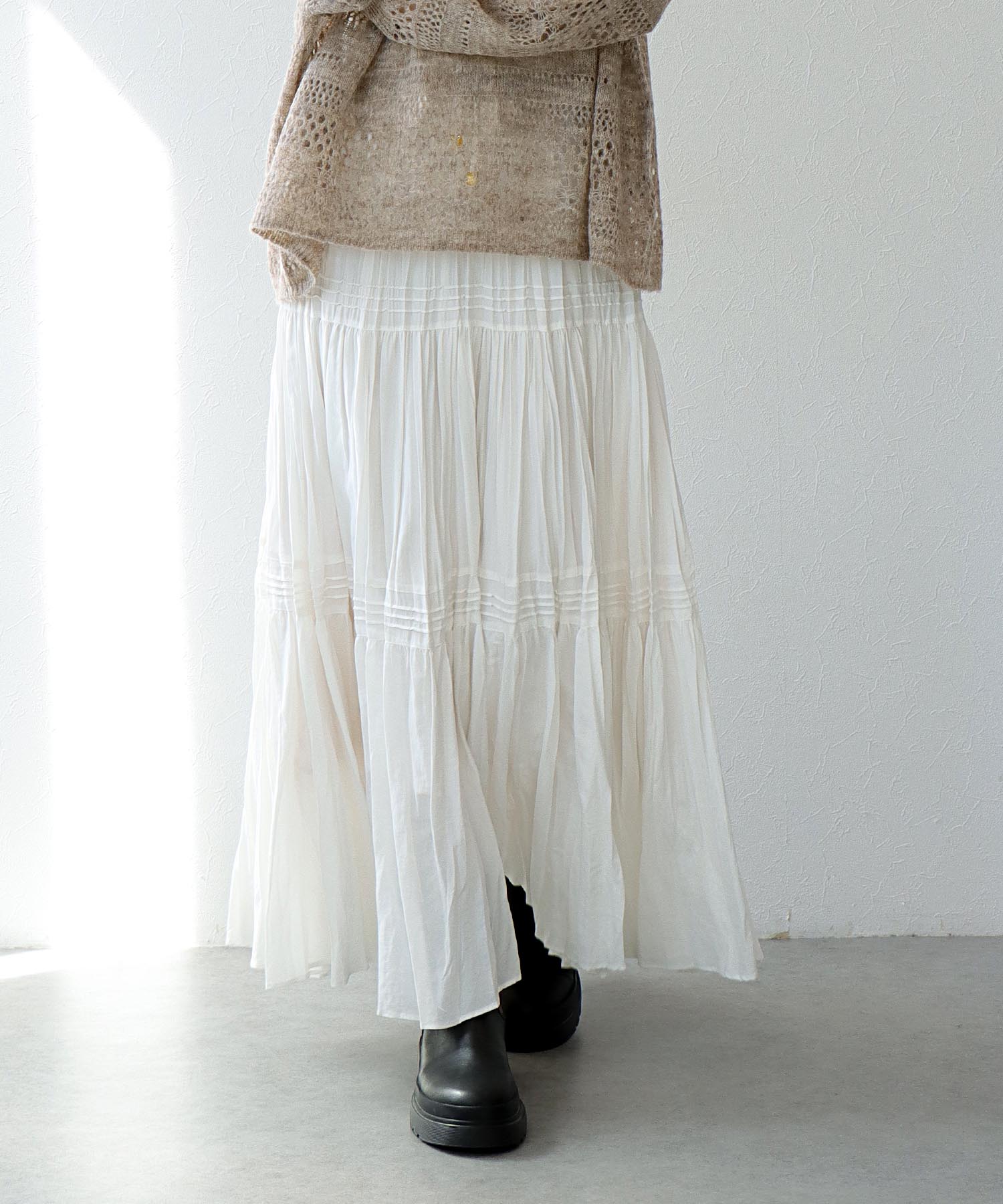 私もリアルバイしたギャザースカート✨。暖色や原色カラーが多くなる秋冬のトップスと合わせやすいおすすめのボトムです。また、「ホワイトって透けやすい?」と思いますが、全く透けなかったのでご安心ください😍!!
