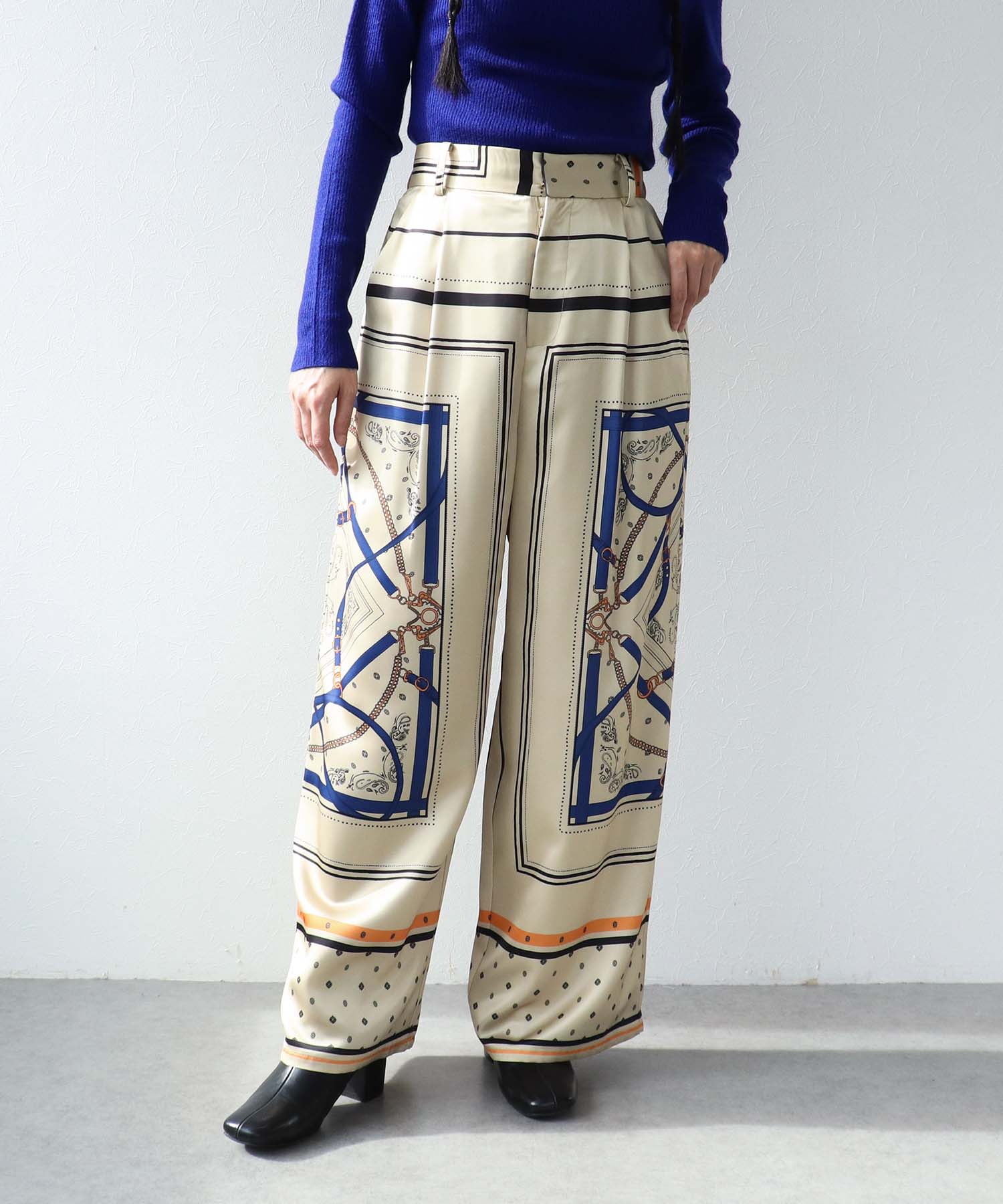 ボトムは形がめちゃくちゃ綺麗なスカーフ柄プリントのパンツでオシャレ見え&スタイルアップ!!