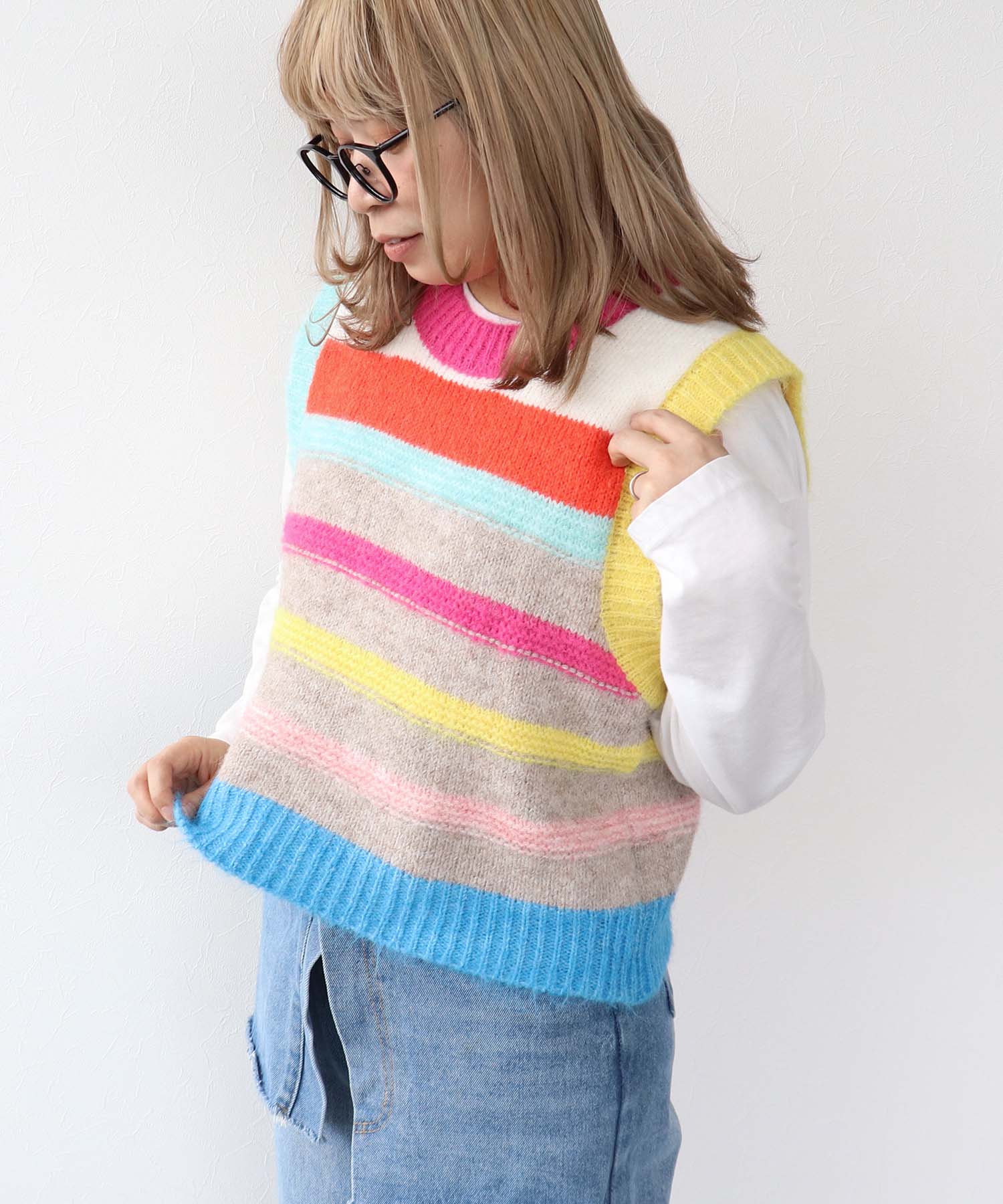 一目惚れのカラフルニットベスト♡かわいい!!普段ベストを着ないのでびっくりしたのですが、ベストってめちゃくちゃ暖かいんですね☺︎!笑