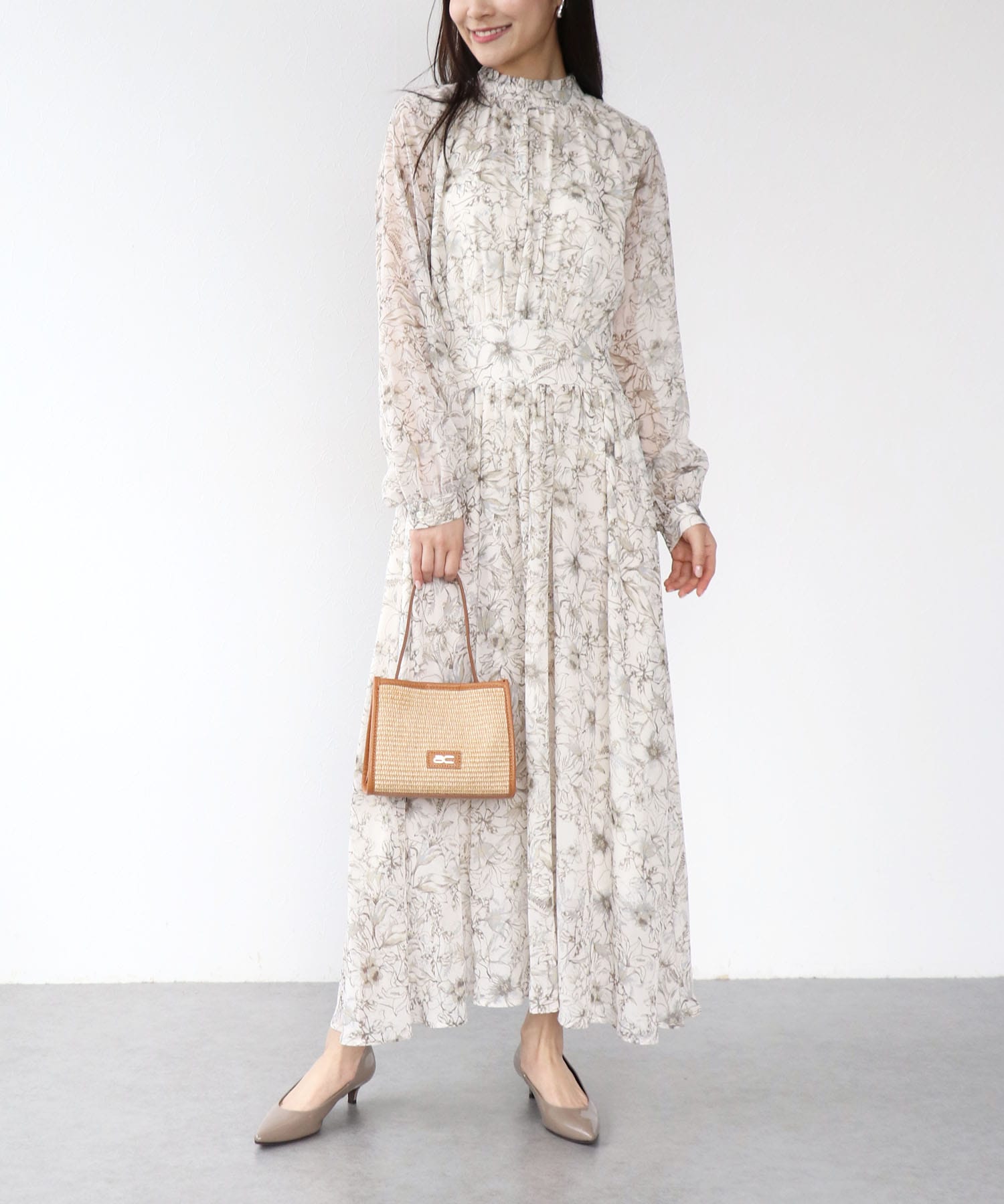 ✔︎スタンドカラーレトロフラワーワンピース