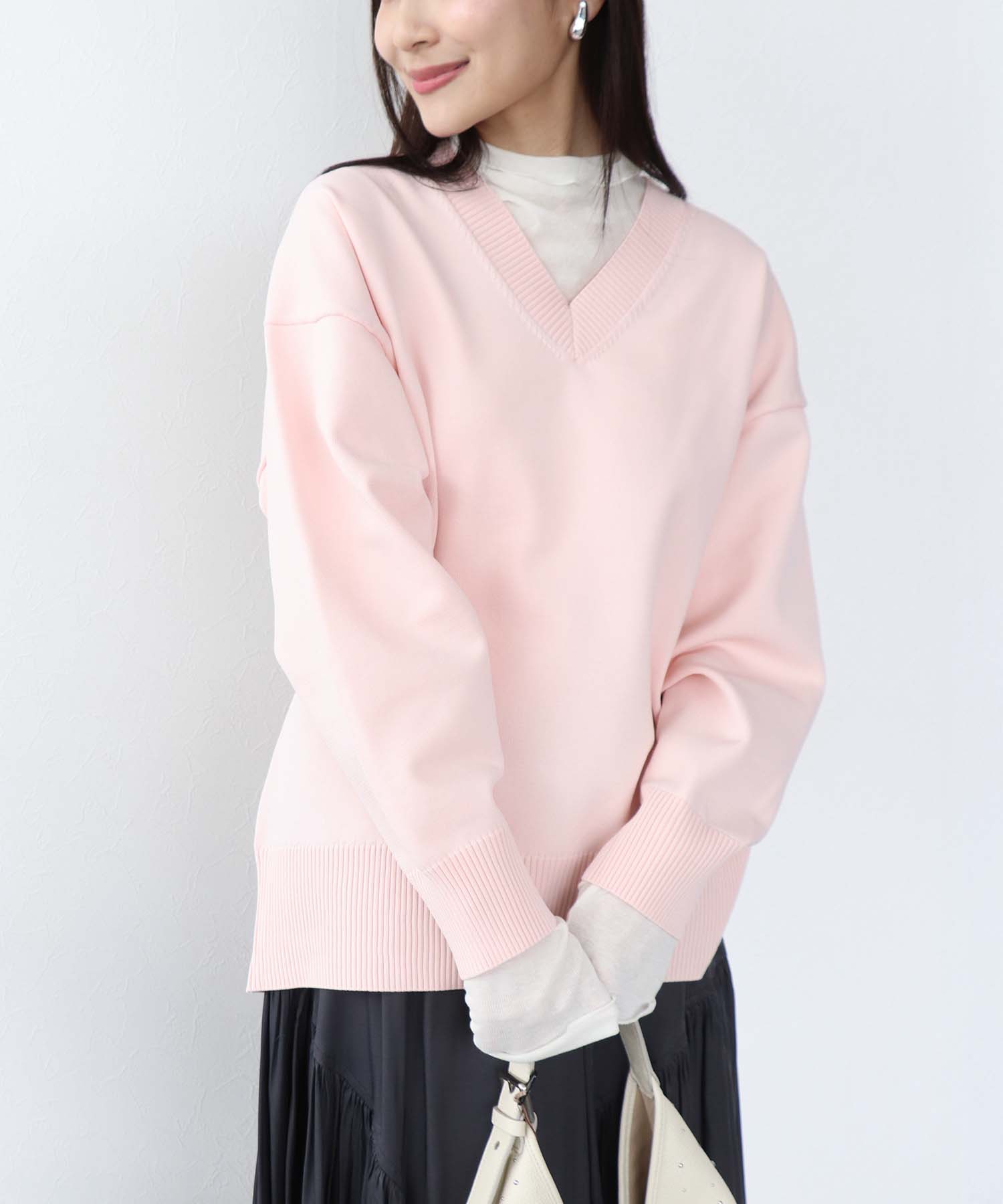 お仕事から普段着まで幅広く着用可能なVネックニット。