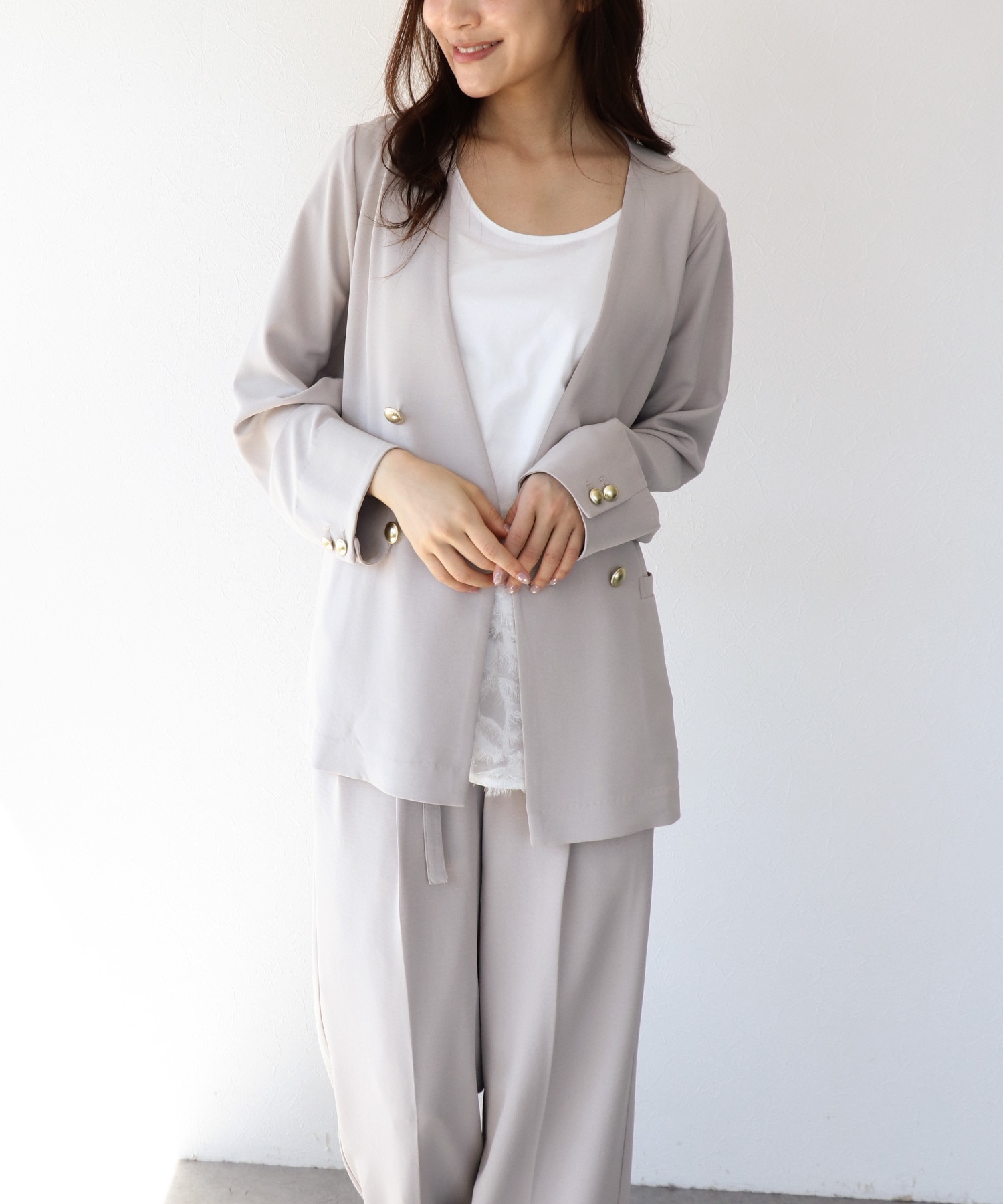 シンプルでスッキリなシルエットながらも、ゴールドのボタンでさりげないアクセントに。
