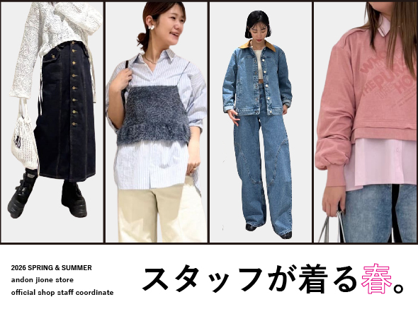 PICK UP ハレの日服。 2026.02.06&ON 2026 PRE SPRING COLLECTION 2026.01.23DRESSLAVE 2026 SPRING & SUMMER COLLECTION 2026.02.09Jines 旅も日常も、これひとつ。 カラーで楽しむ、おすすめバッグ特集! 2025.12.27Out n About 大人気デニムは神アイテムでした。 2026.02.08Three Four Time CEPICAの春のオケージョン特集 2026.01.30Cepica