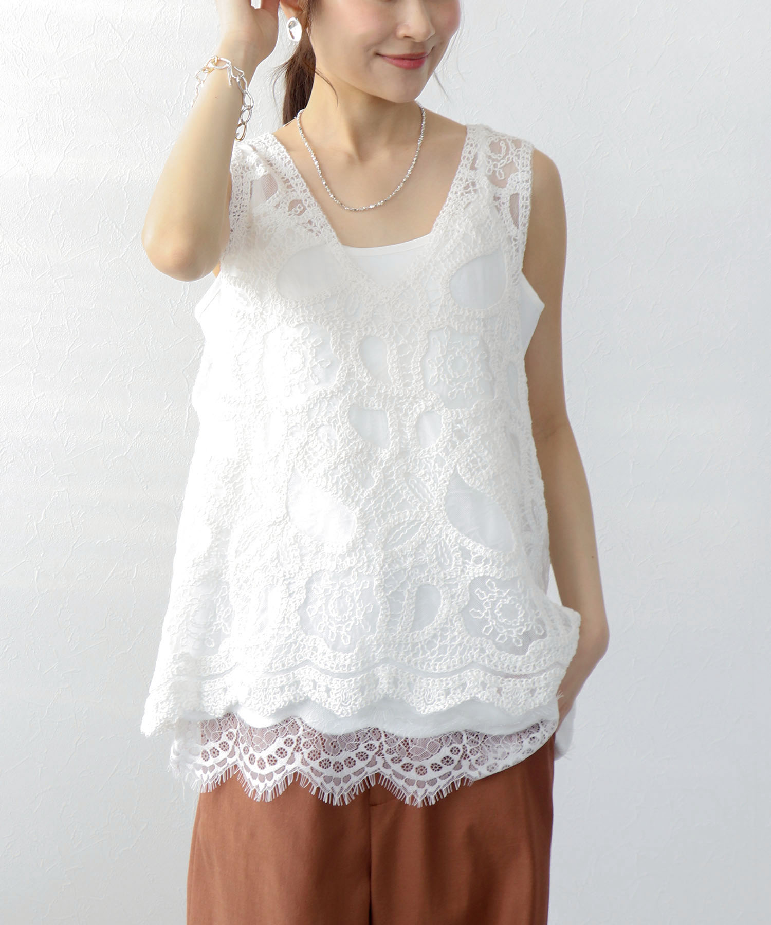本製品はデリケートな素材を使用していますので過度の摩擦や引っかけ、引っぱりなどを避け、お取扱いにはご注意下さい。