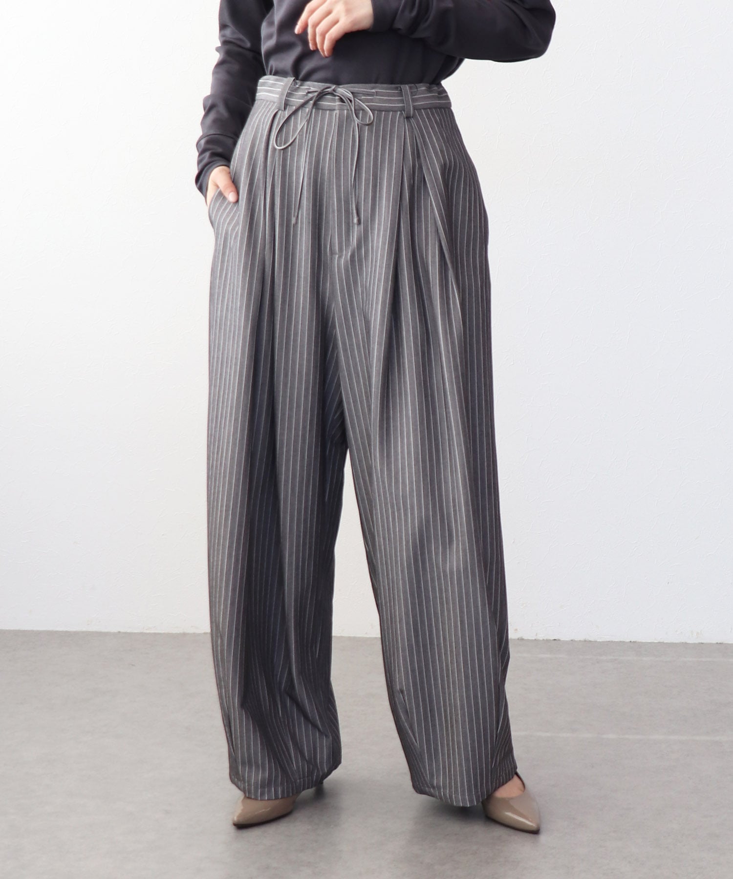 繊細なピンストライプ柄が描く立体感が魅力のワイドパンツ。