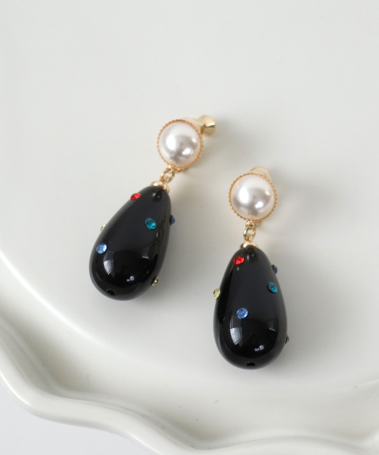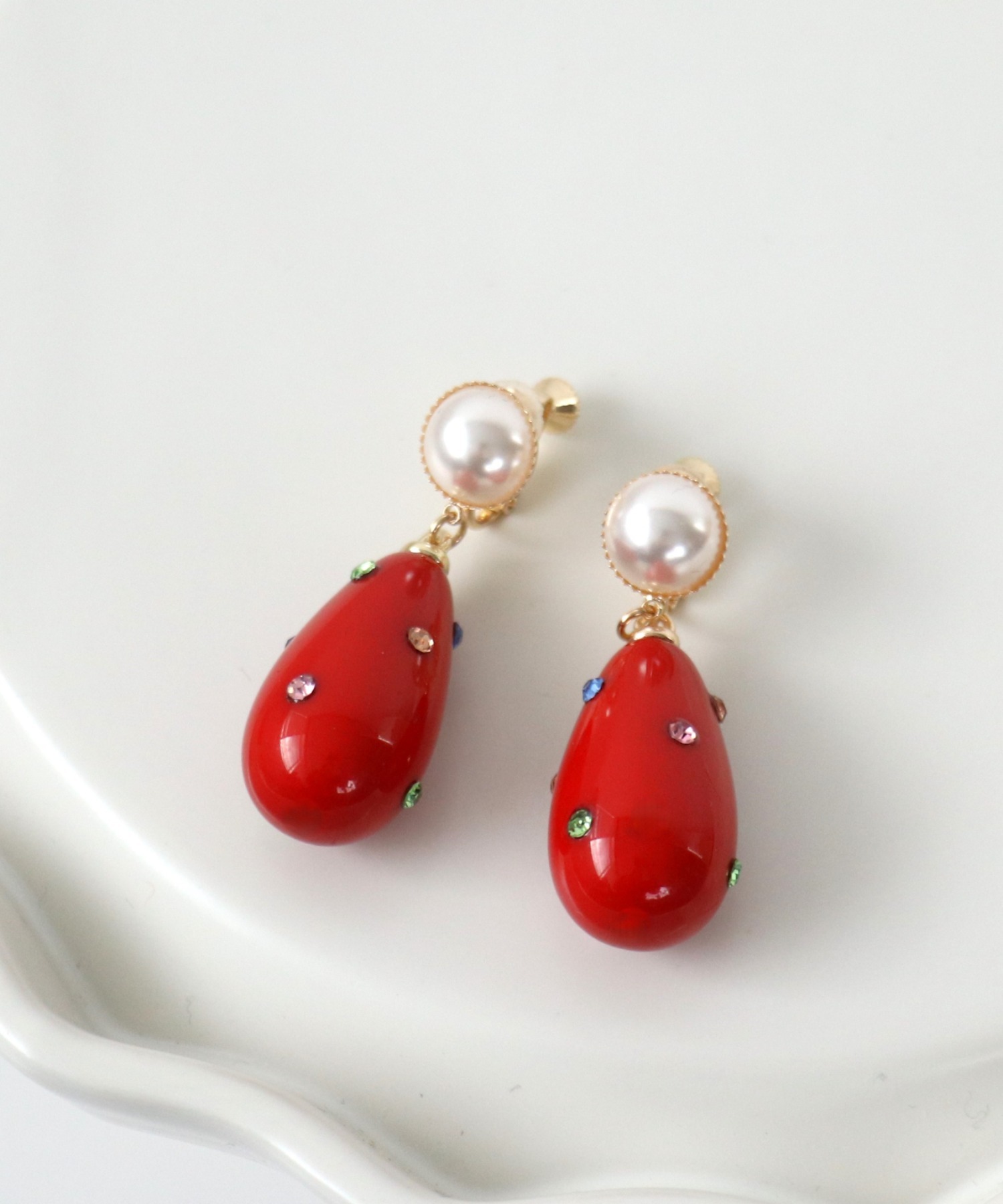 ブラック/レッドのコロンとしたドロップモチーフが目を惹き