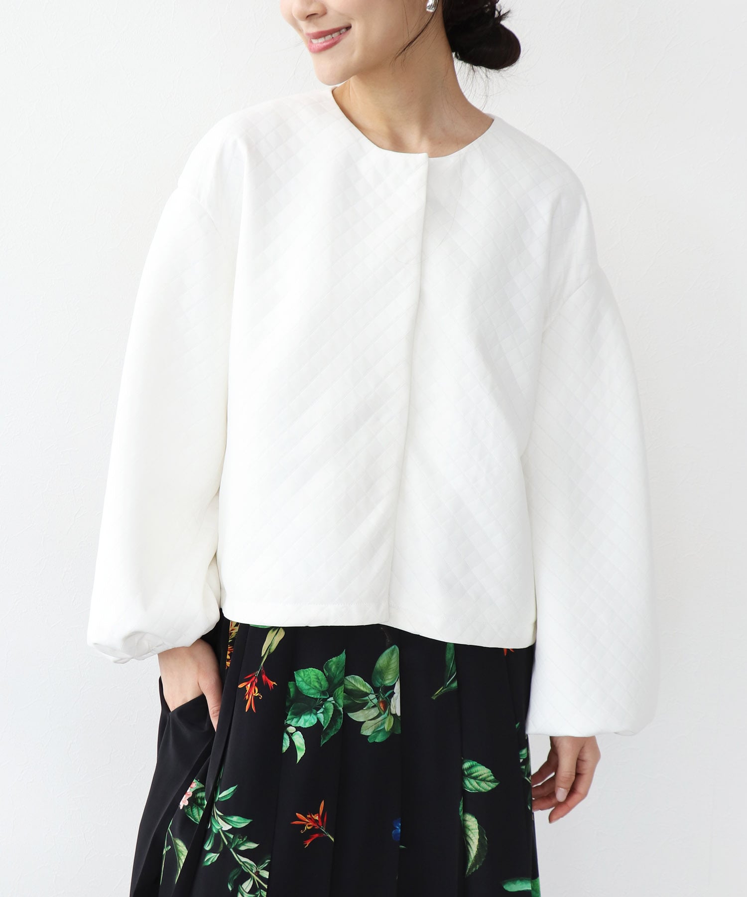 立体感のあるキルティング素材と、ボリュームスリーブが目を惹くブルゾン。