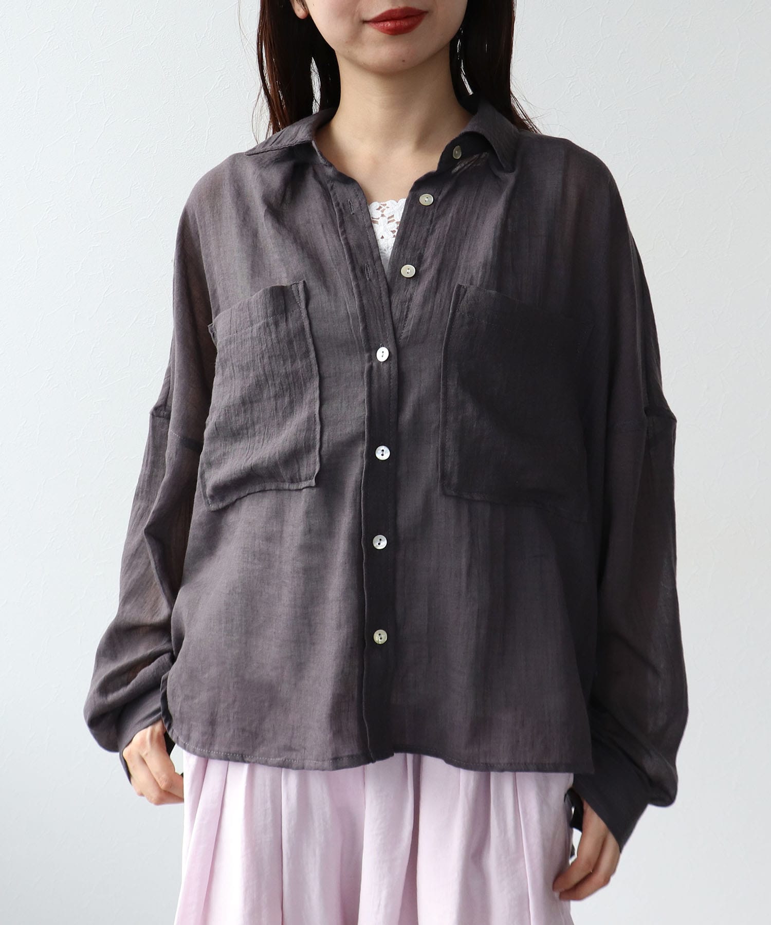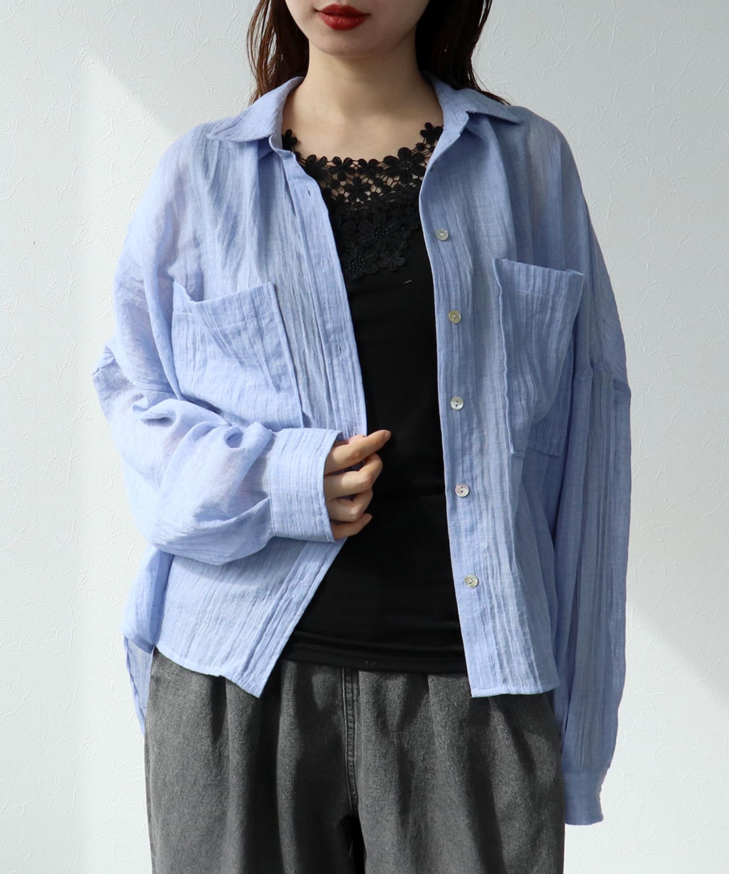 ガーゼのような優しい肌触りの透け感が爽やかなシャツ。