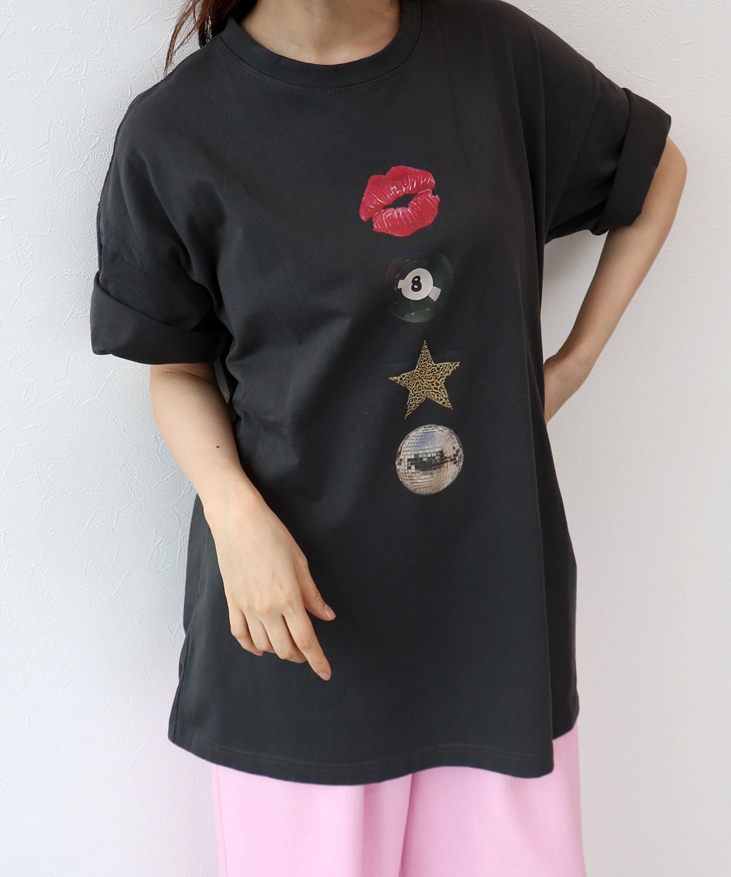 〔お家で試着〕モチーフプリントビッグTシャツ