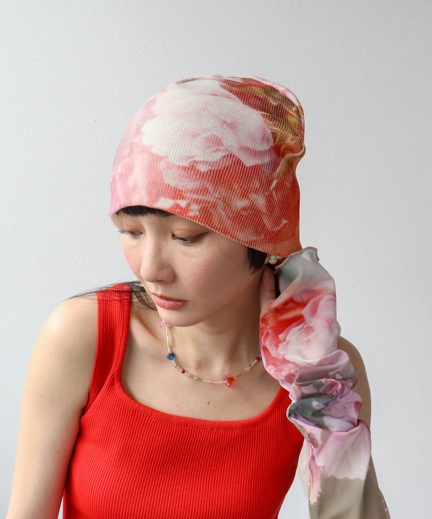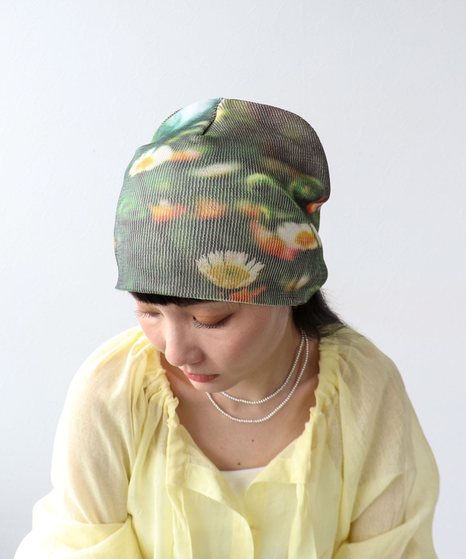 柔らかくシャリ感のあるニット糸を使用しているので、夏でも被りやすい素材感です。