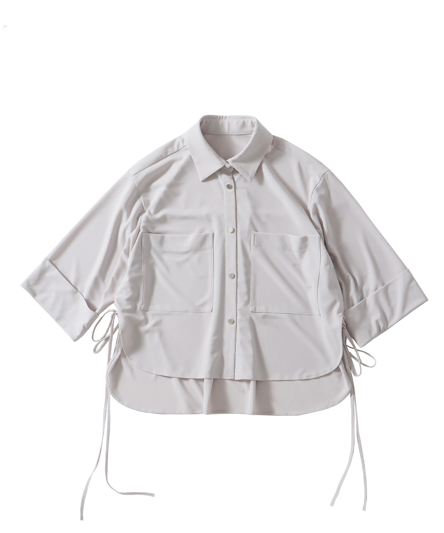 素材には強撚糸のジャージーを使用し、シャリ感と清涼感のある風合いが特徴。