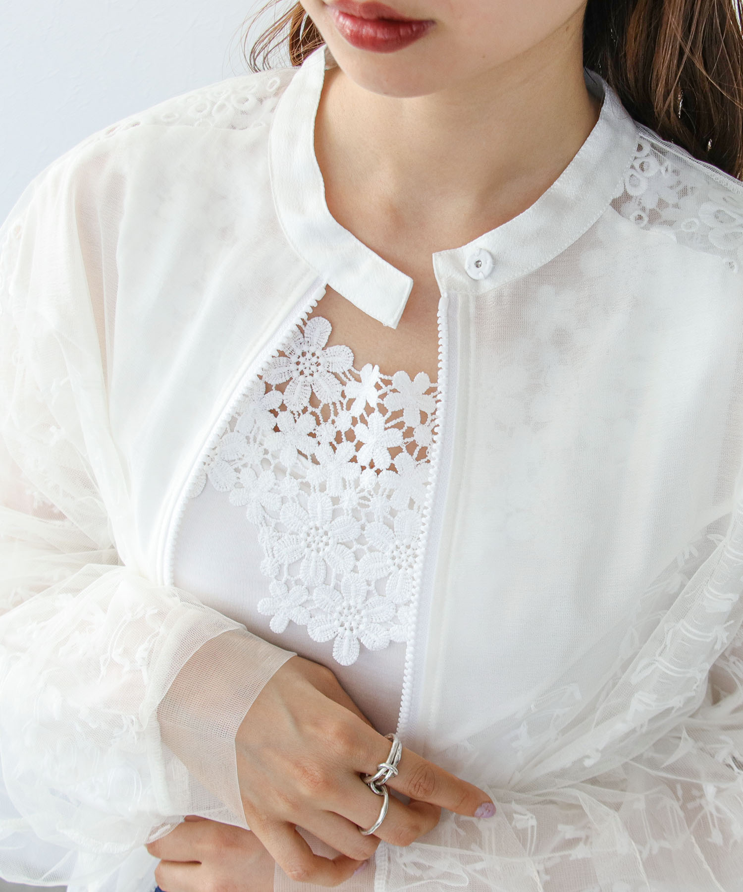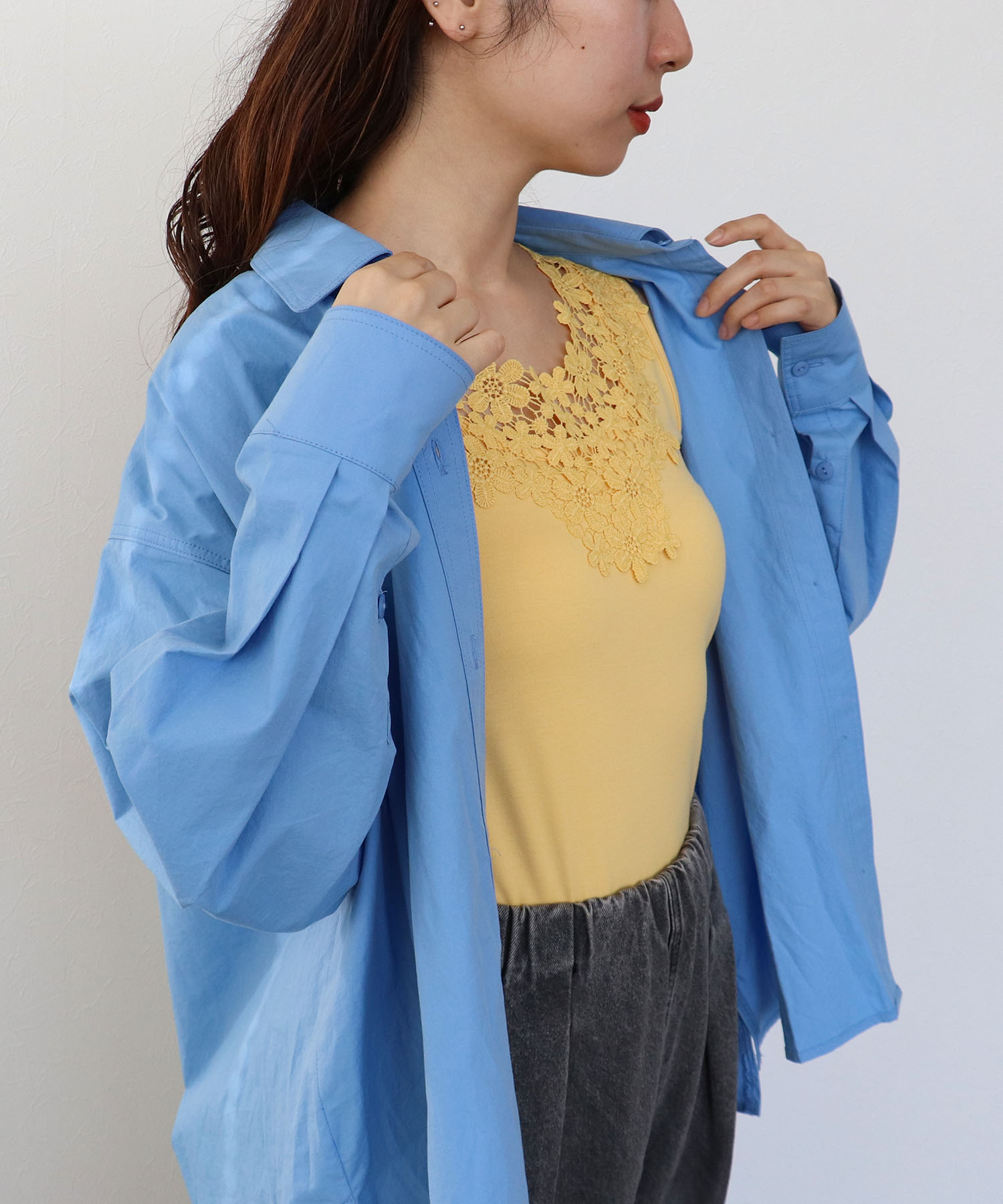 本体: ポリエステル61%, レーヨン32%, ポリウレタン7%, レース: ポリエステル100%