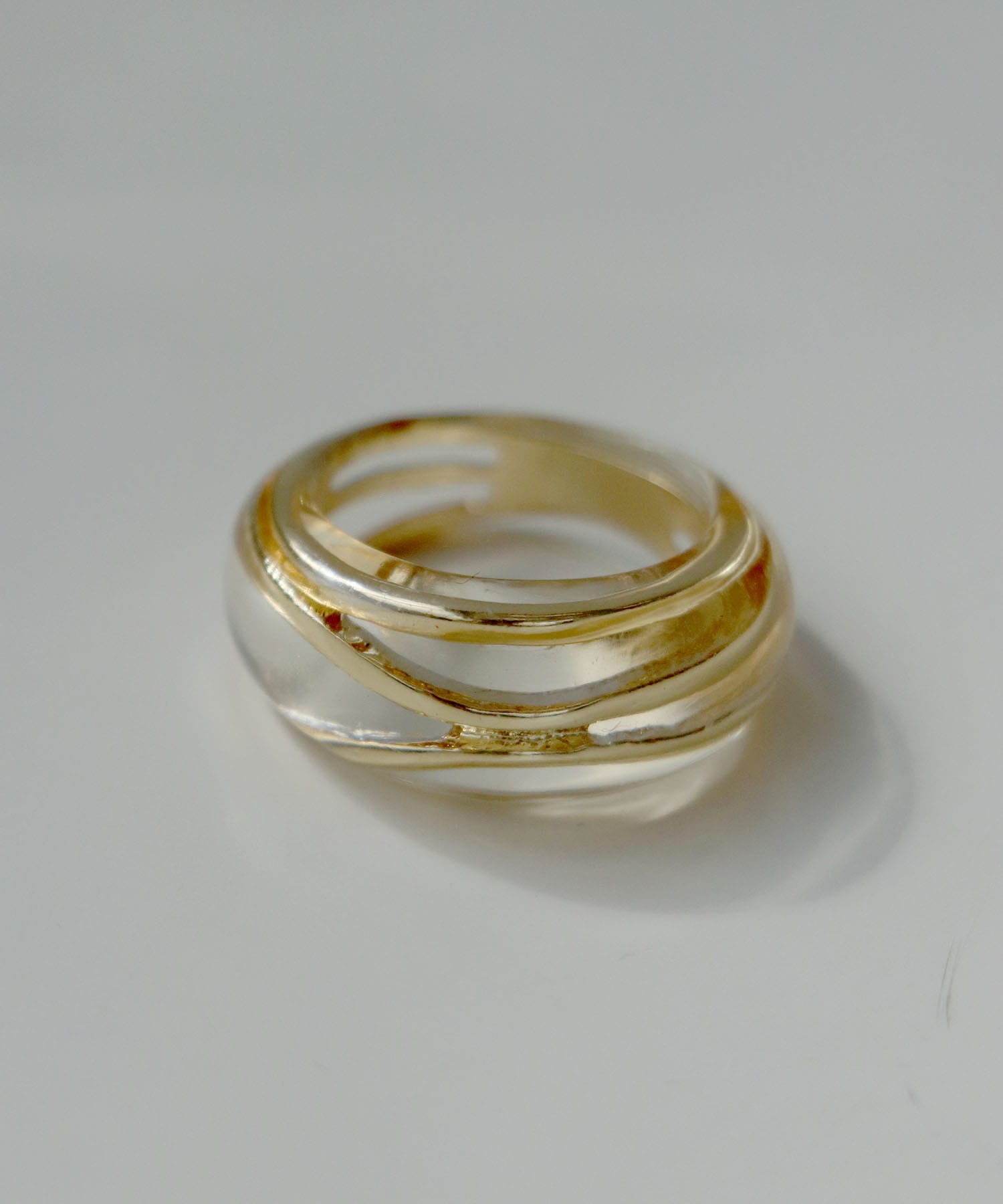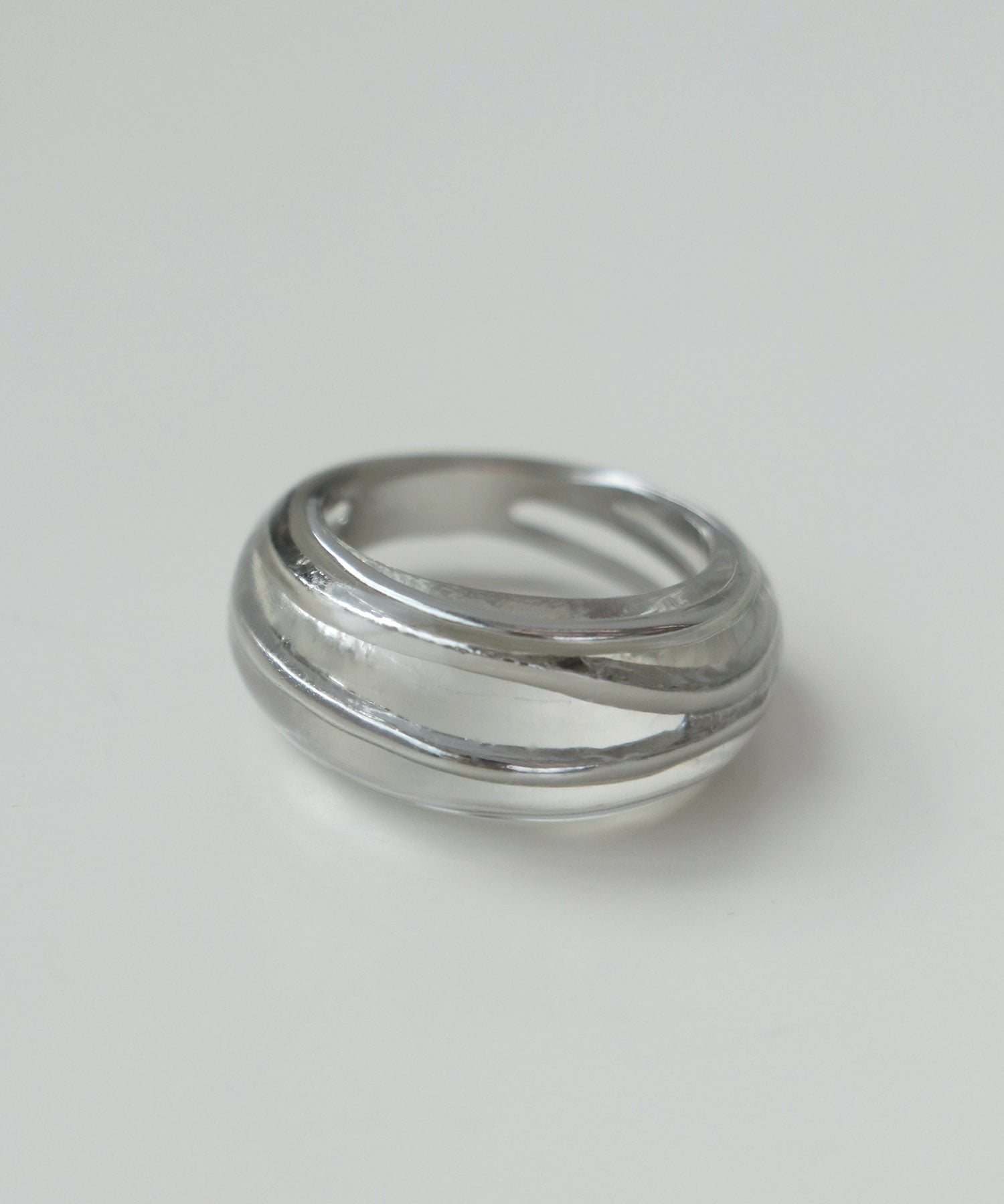 クリア樹脂の中に三連風リングが封入された見た目も美しく涼し気なリング。