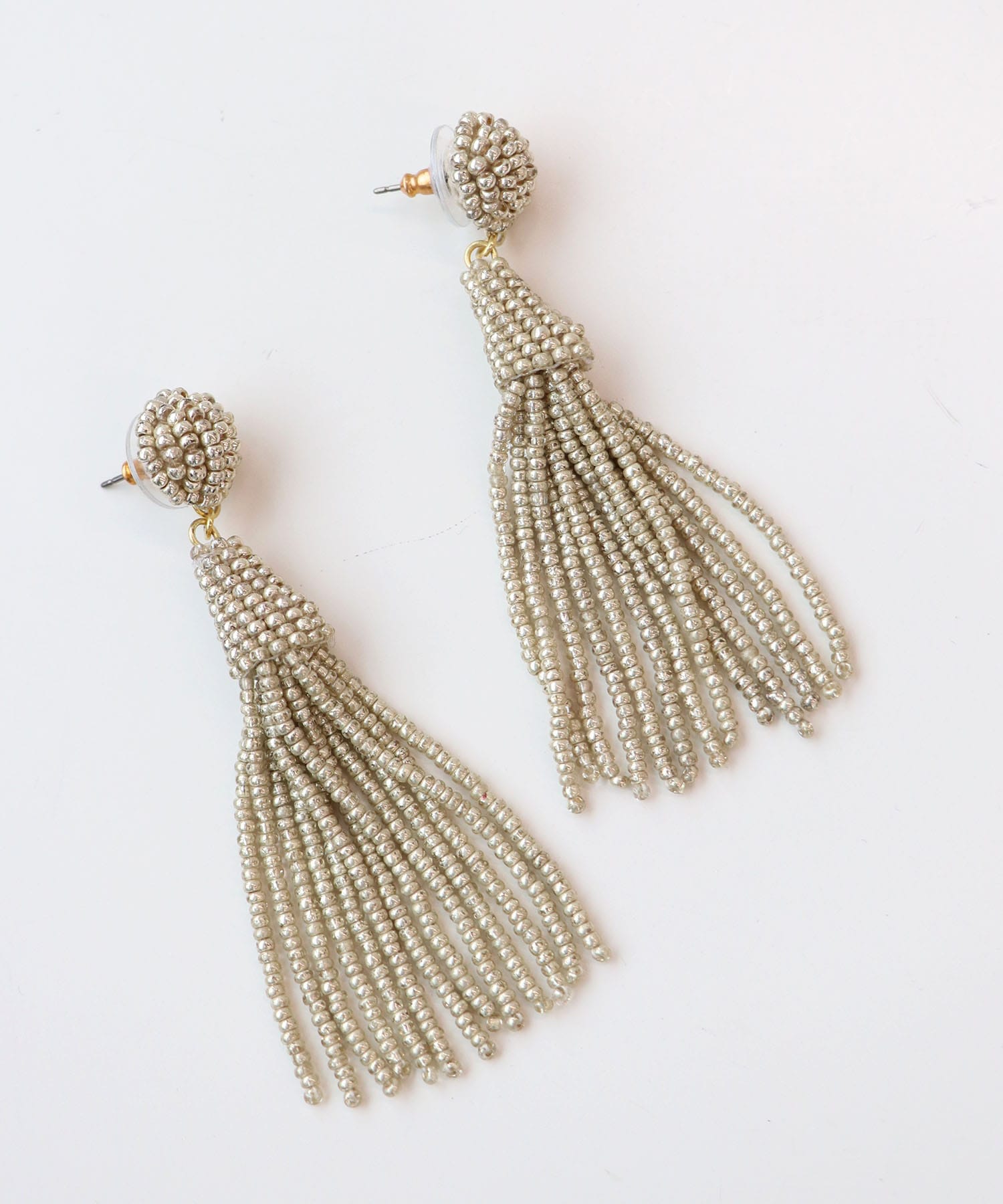 ビーズのタッセルピアスで揺れ感も華やかなデザイン。