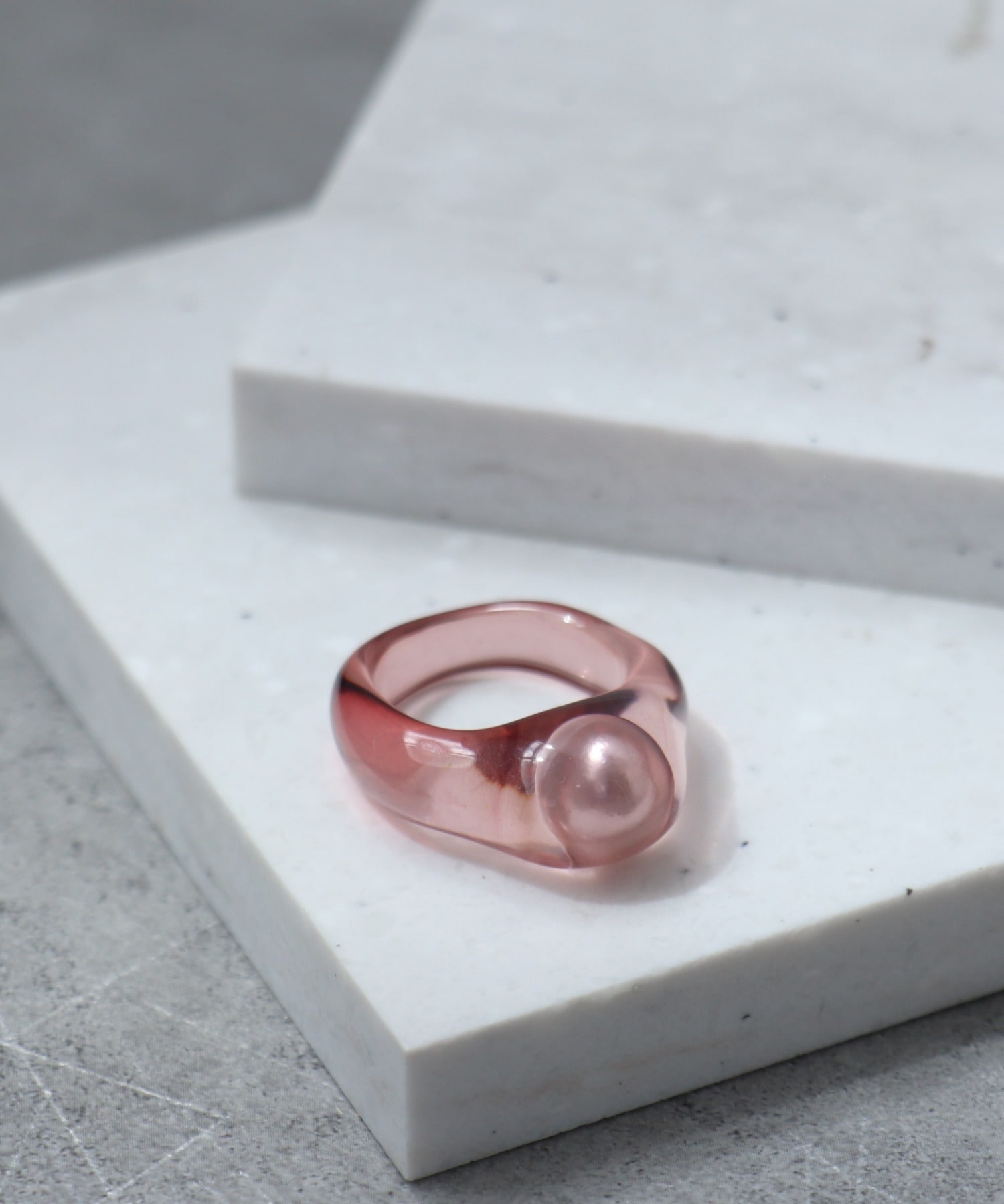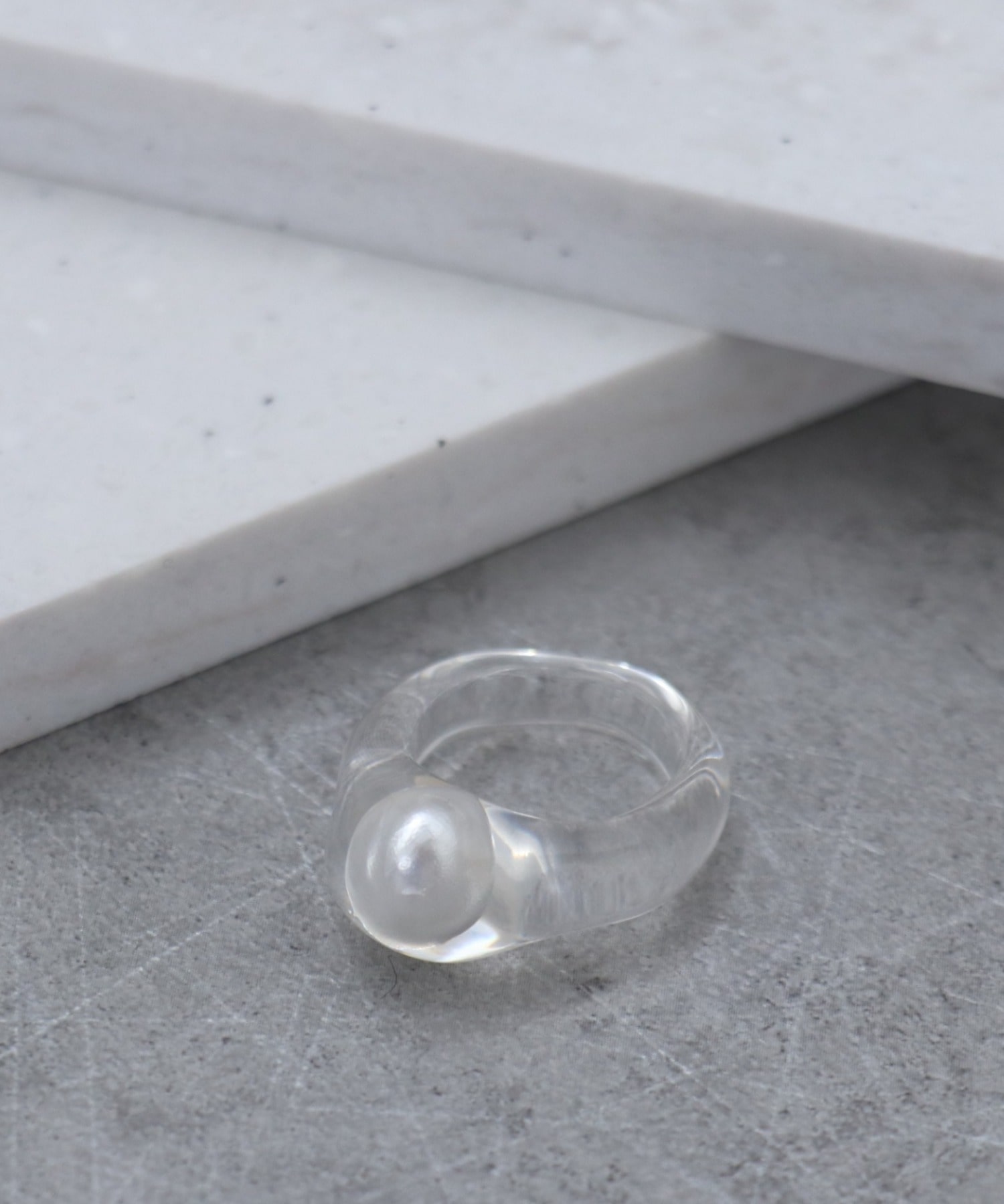 透明感を活かしながらパールを封入した涼しげなアクリルリング