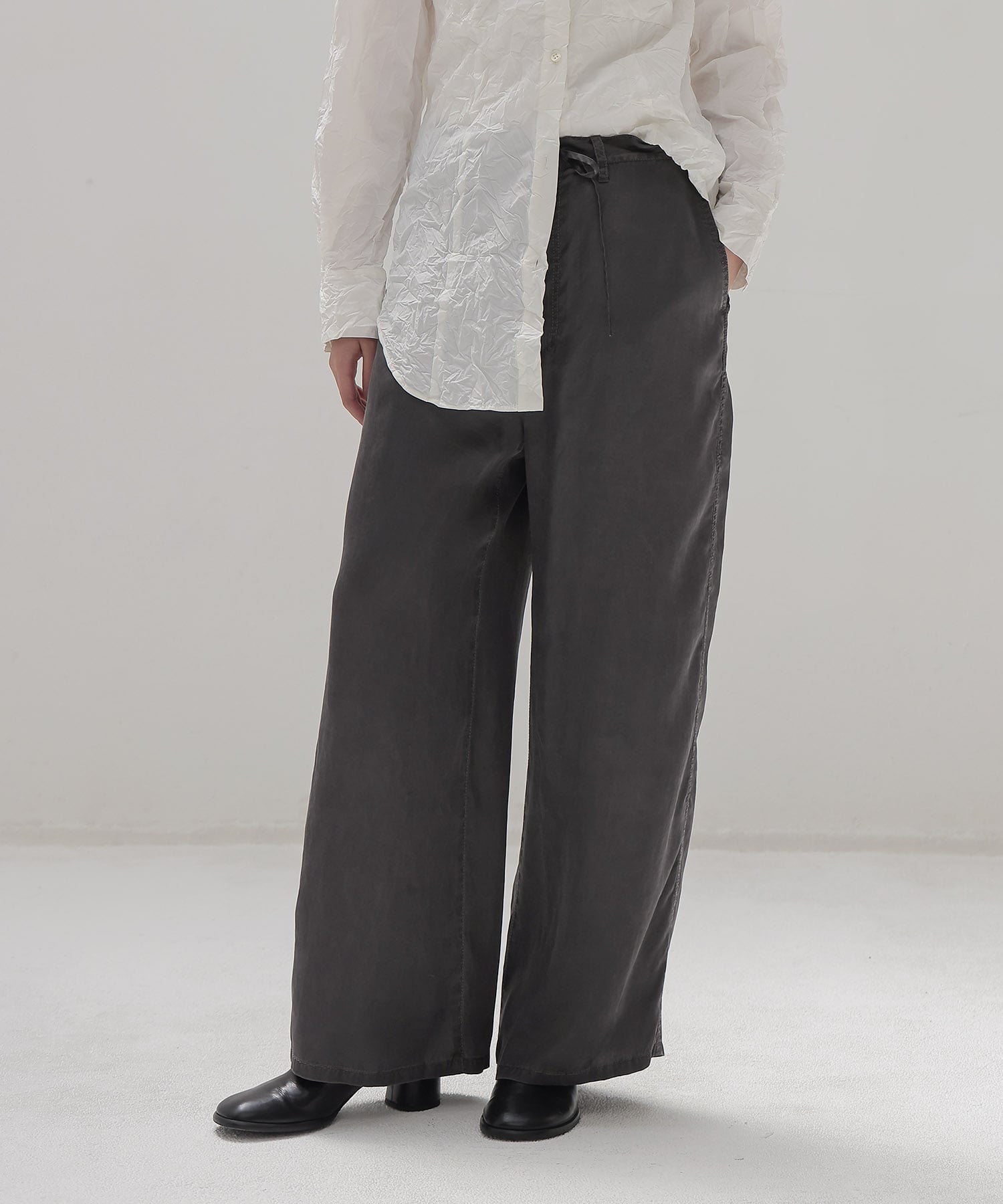 ウエストは紐で調整できるゴム仕様で、ストレートシルエットがどんなトップスにも合わせやすい一本。