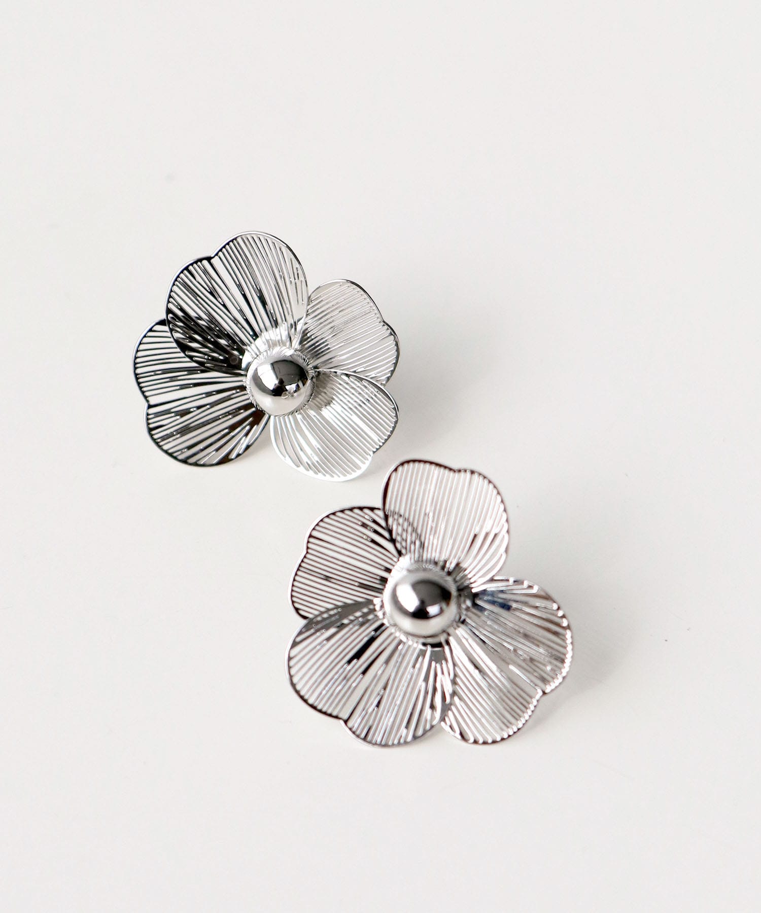 透かしメタルの軽い印象のフラワーピアス。