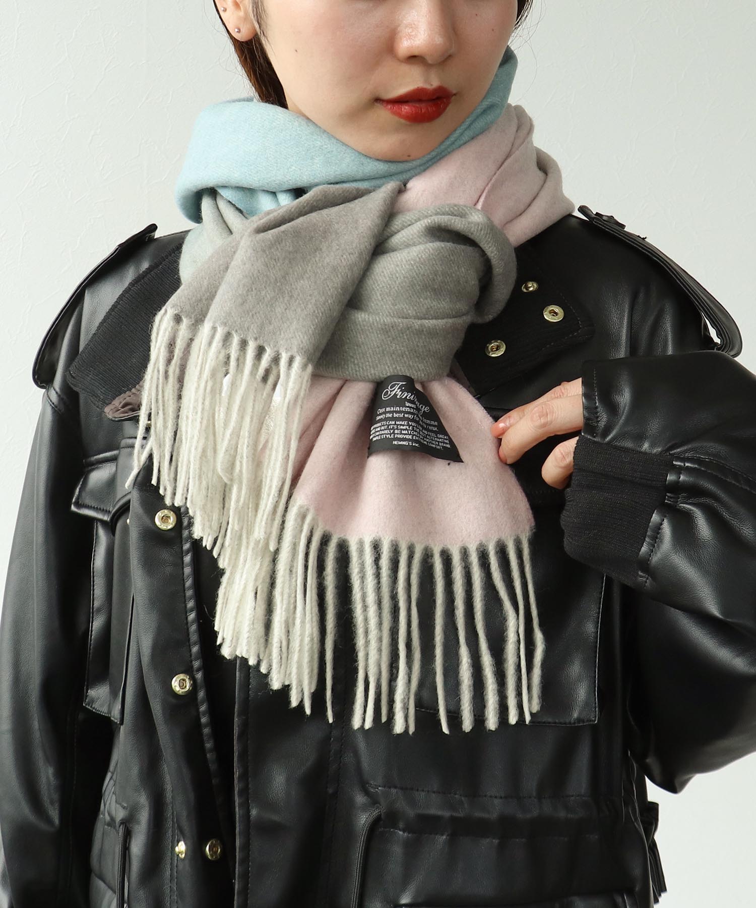 グラデーションカラーが美しく見える分量によって印象がガラッと変わるストールです。