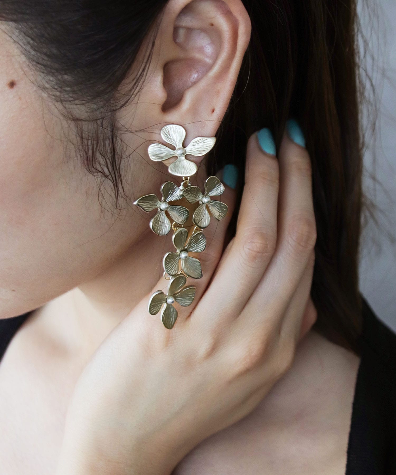 大ぶりで存在感溢れるメタルフラワーモチーフピアス。