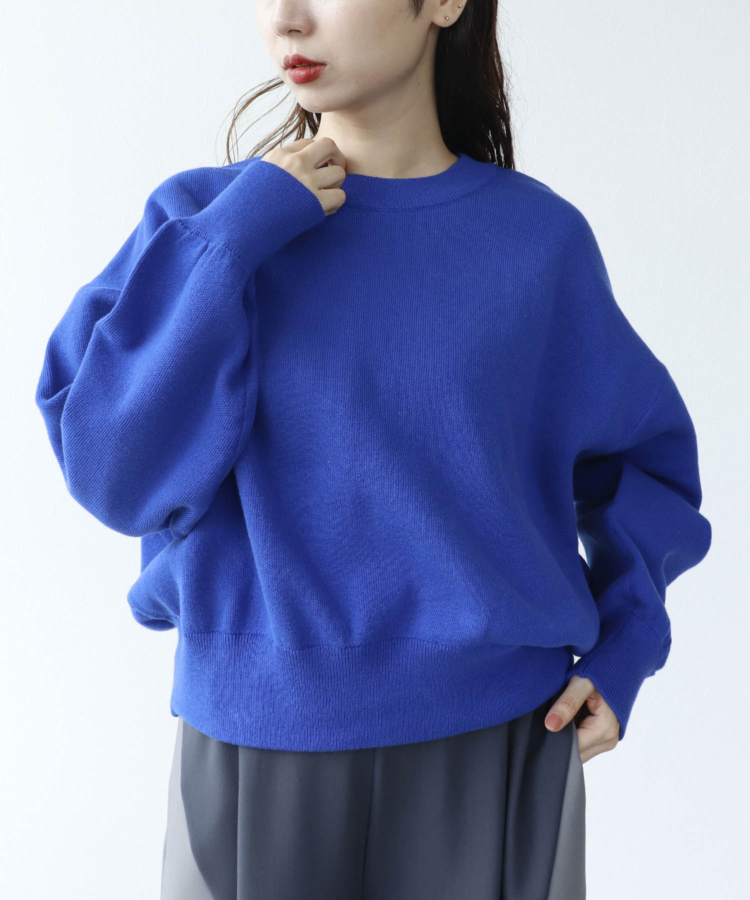 カラーの色合いが綺麗なスウェットライクなトップス。