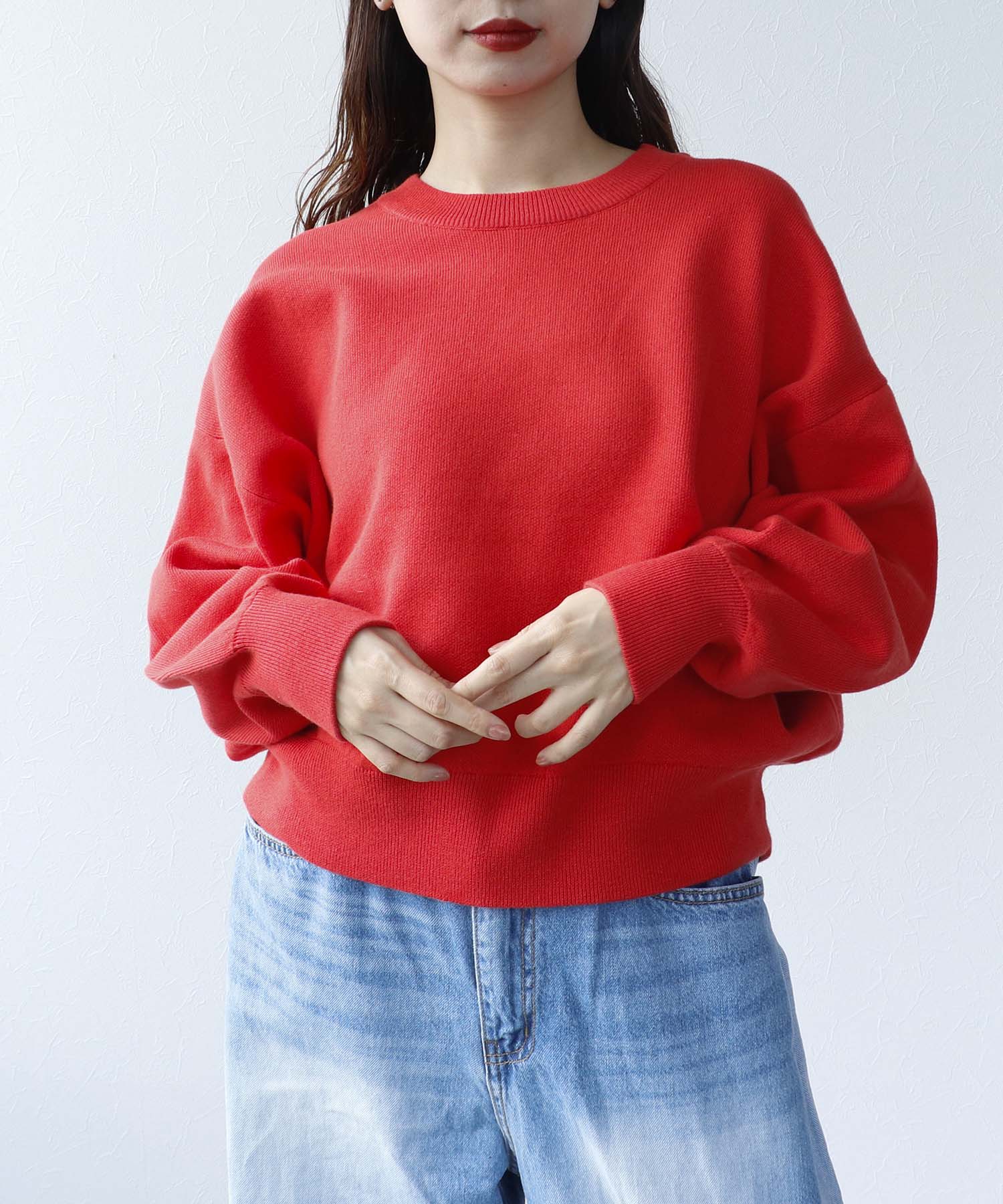 • スウェットライククルーネックプルオーバー