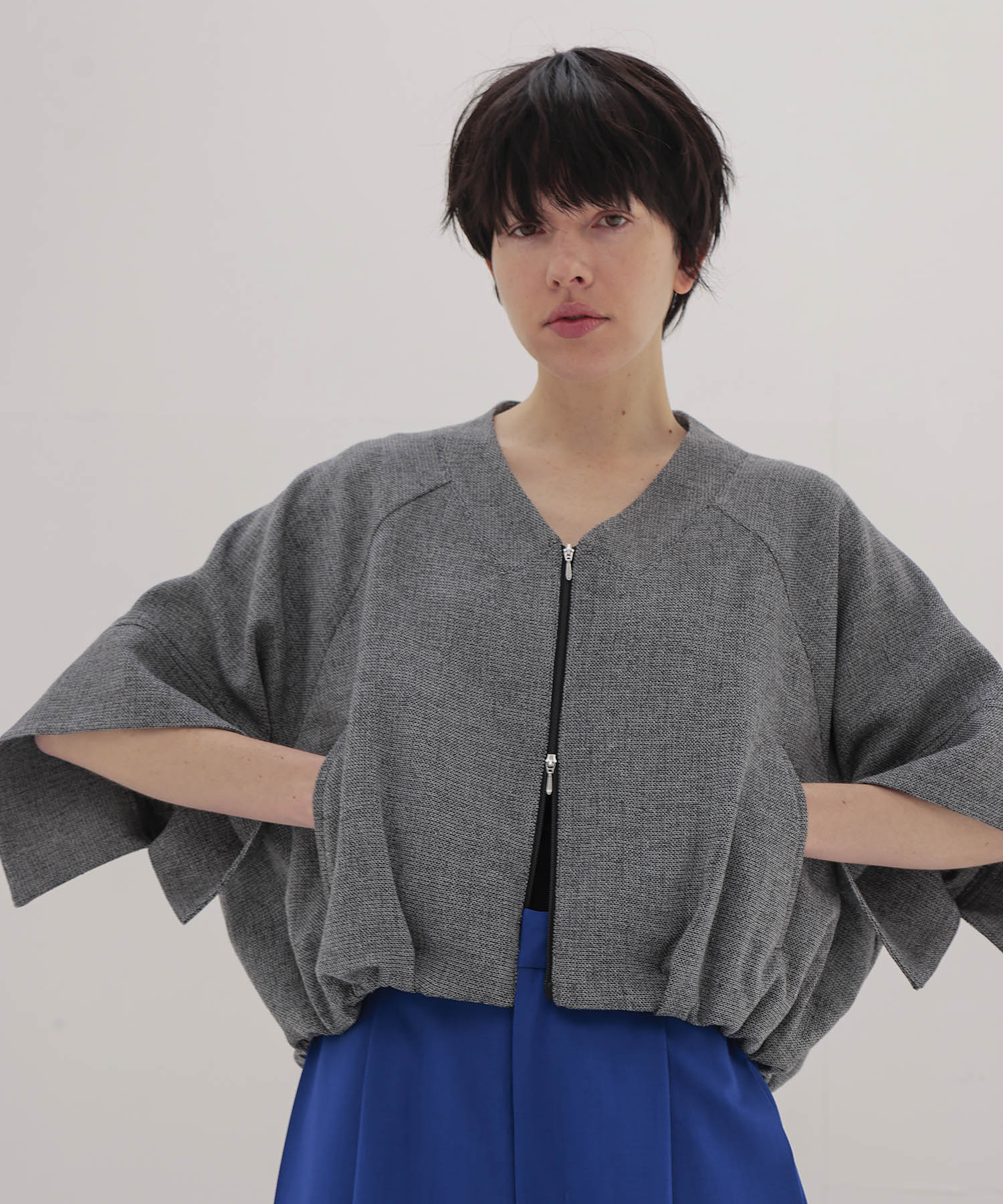 袖先が軽く跳ねるフォルムにより、肩回りを華奢に見せてくれるのもポイント。