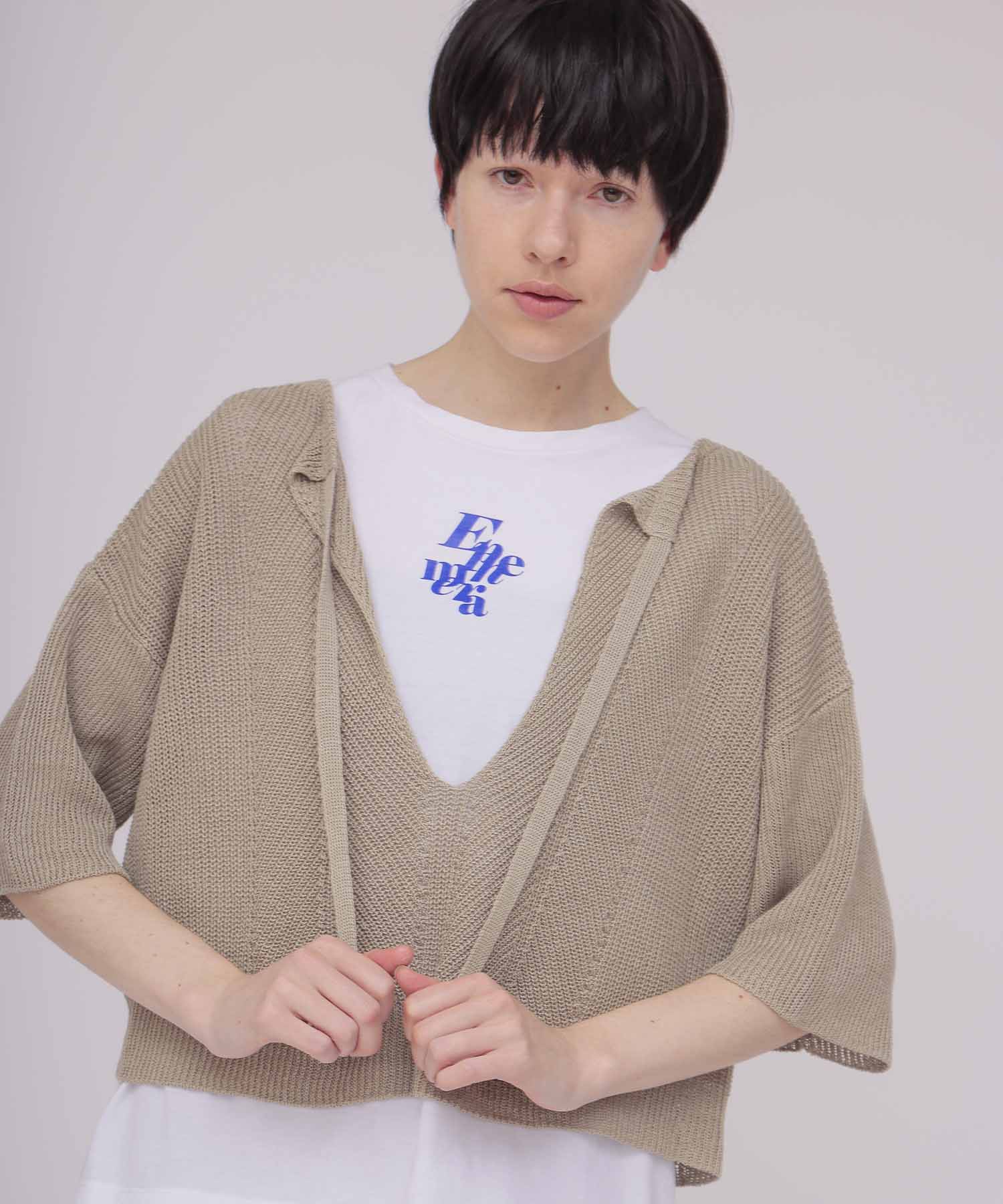 リネン100%の涼やかでありながら透けすぎない編地のプルオーバー。