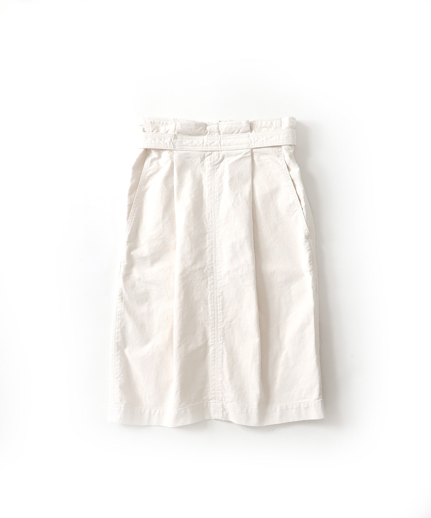 ウエストにベルトのアクセントがあるハイウエストのタイトスカート。