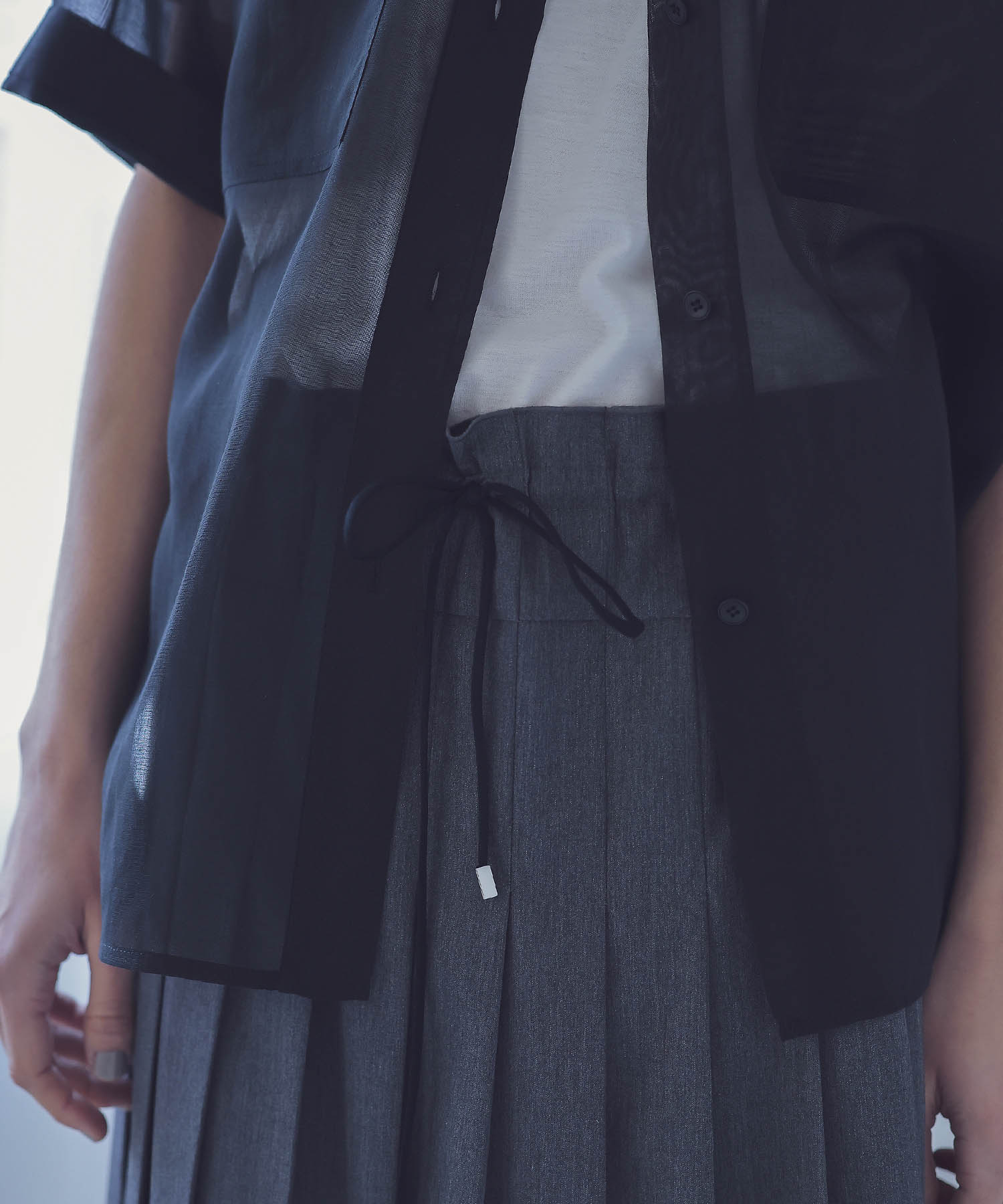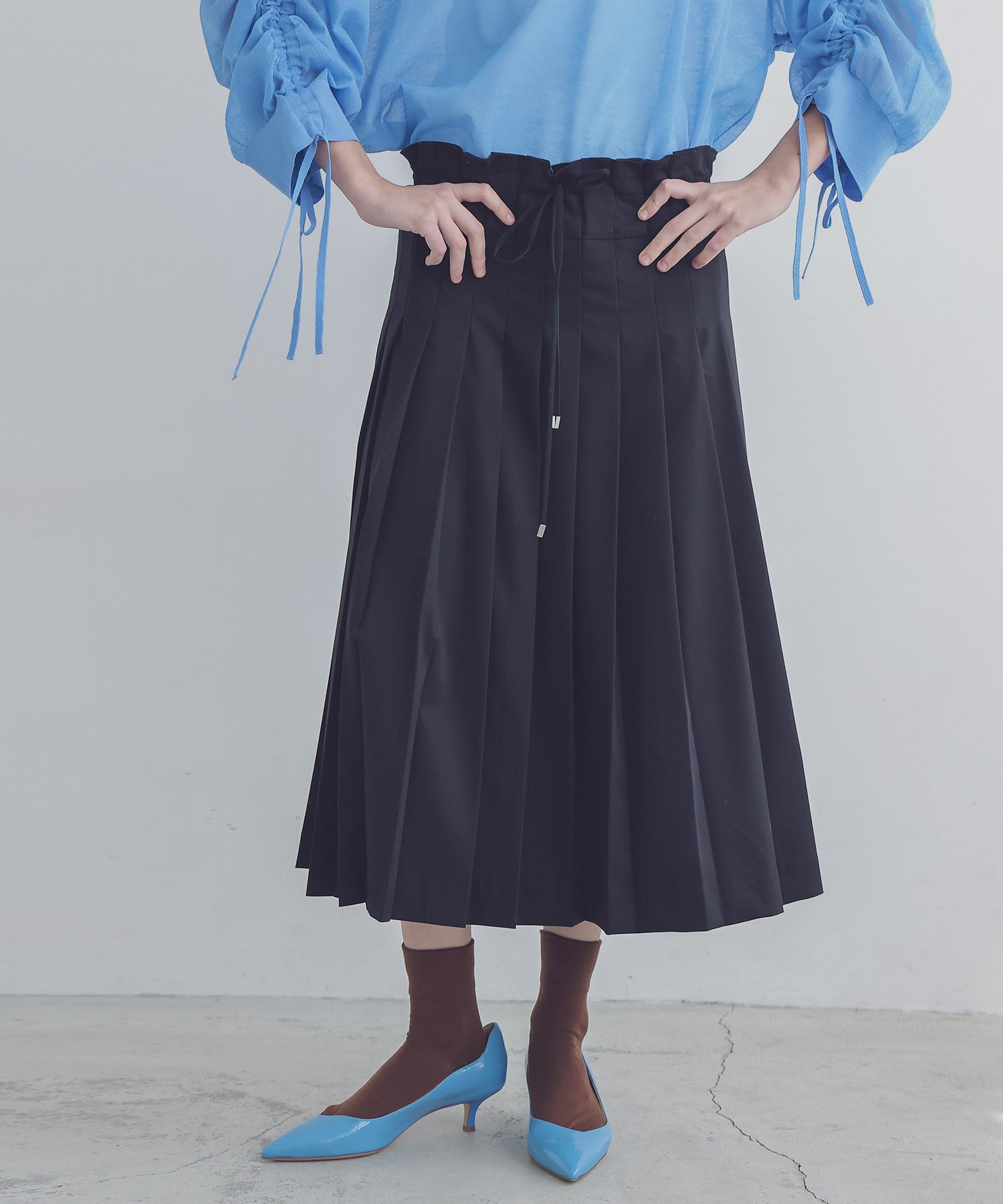 ミドルヒップまでプリーツが開かない仕様のため腰回りはすっきりとしたシルエット。