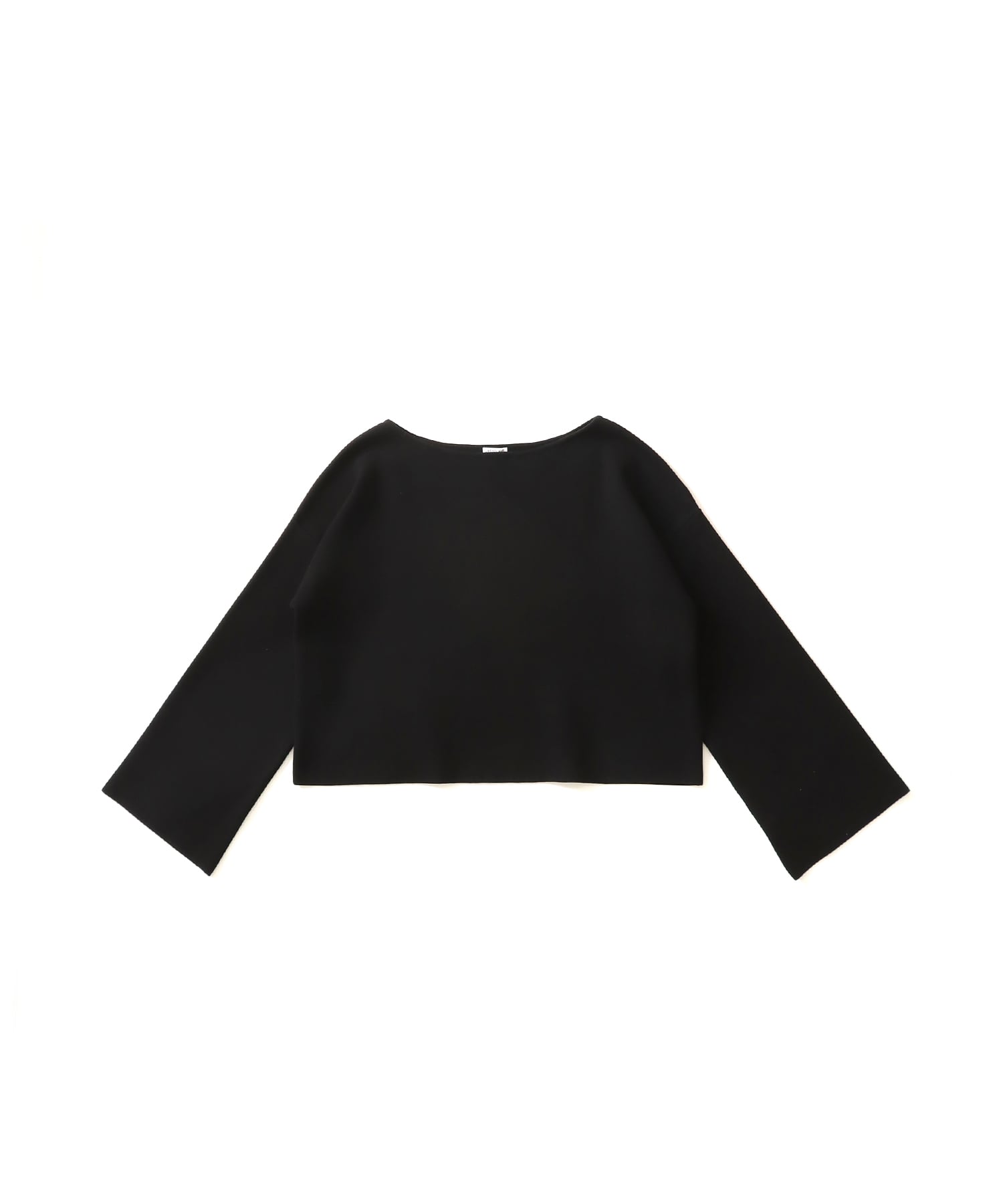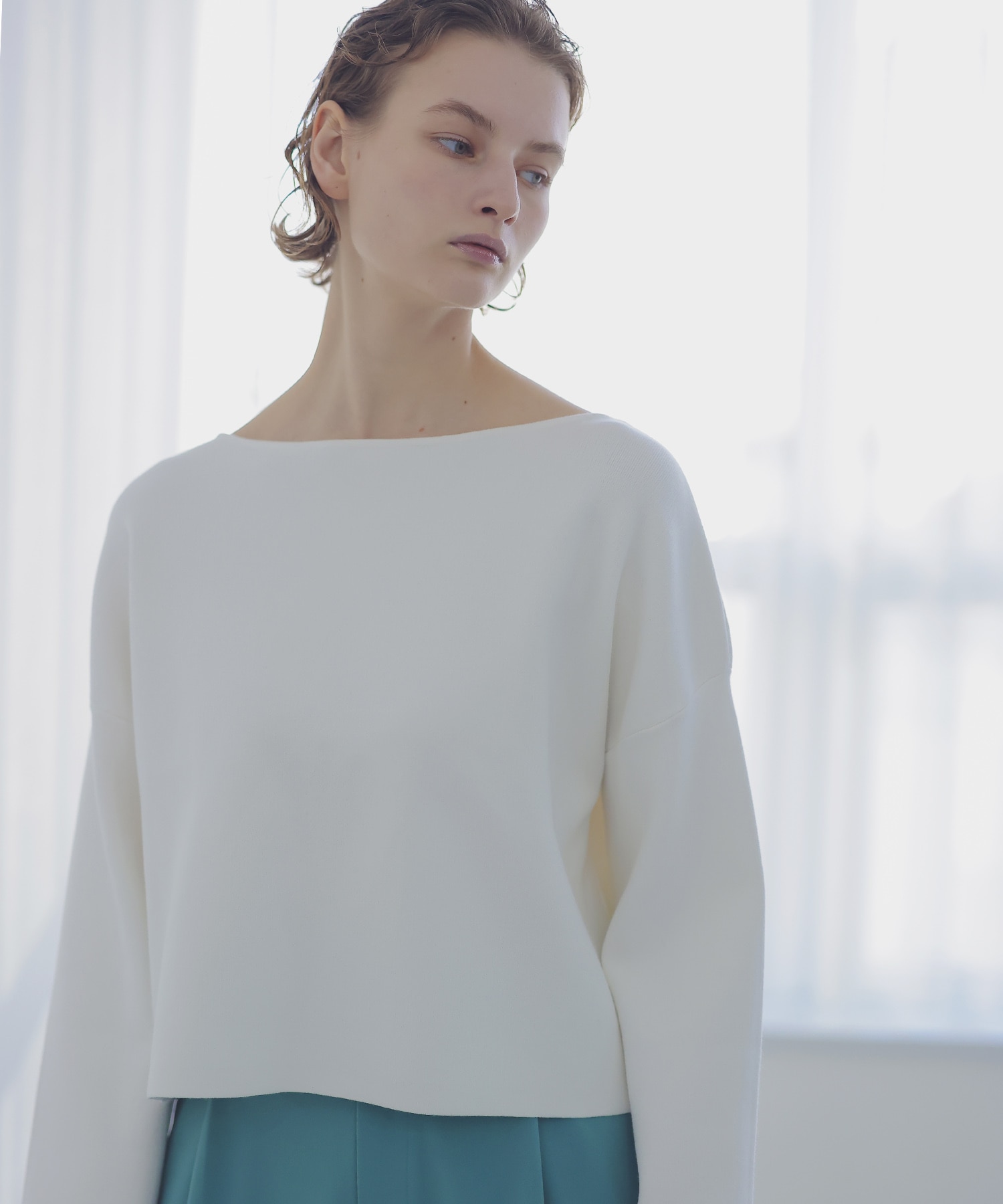ソリッドな編地にリブをつけず、とことん無駄をそぎ落としシンプルでミニマルなトップス。