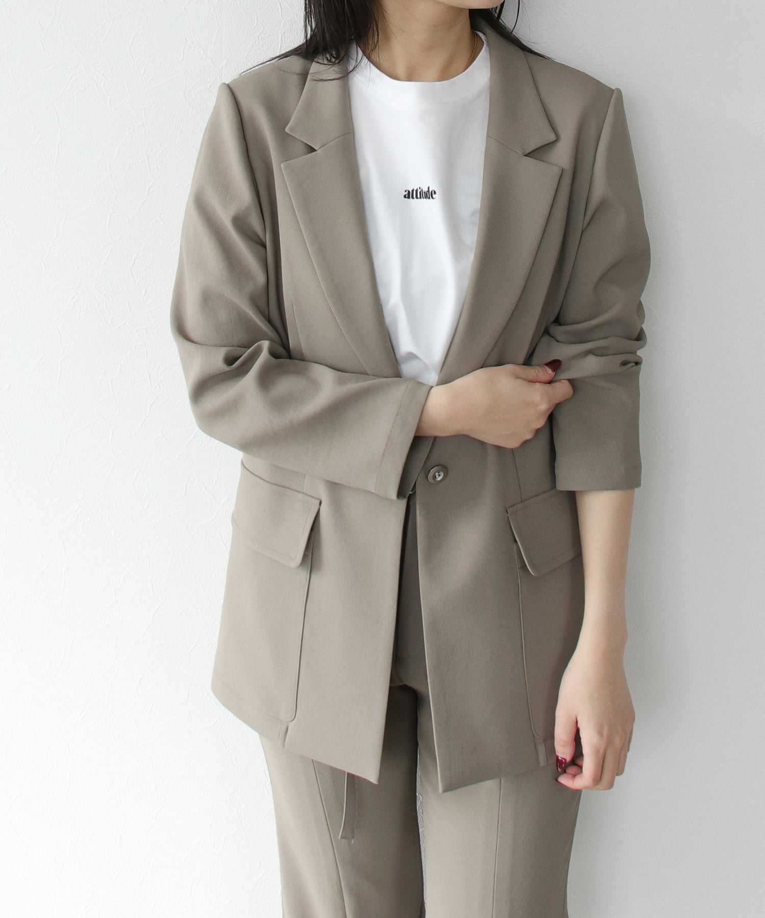 フロントベンツが入ることによりベルボトムのような雰囲気で脚長効果抜群のシルエット。