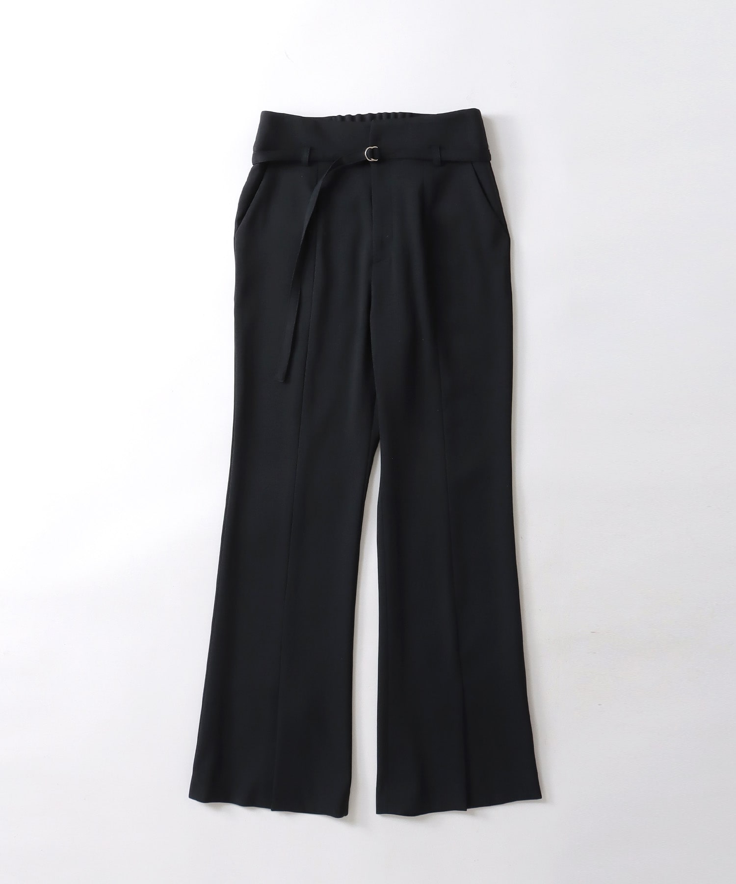 上品な印象の生地にタンブラー加工のような仕上げを施し抜け感を表現したフレアパンツ。