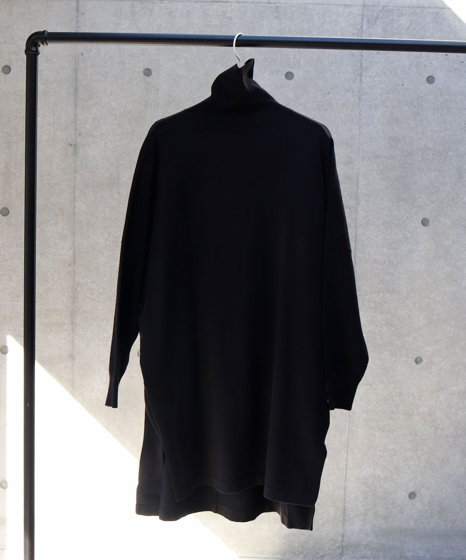 ゆとりのあるポンチョのようなシルエットは一枚で存在感抜群。