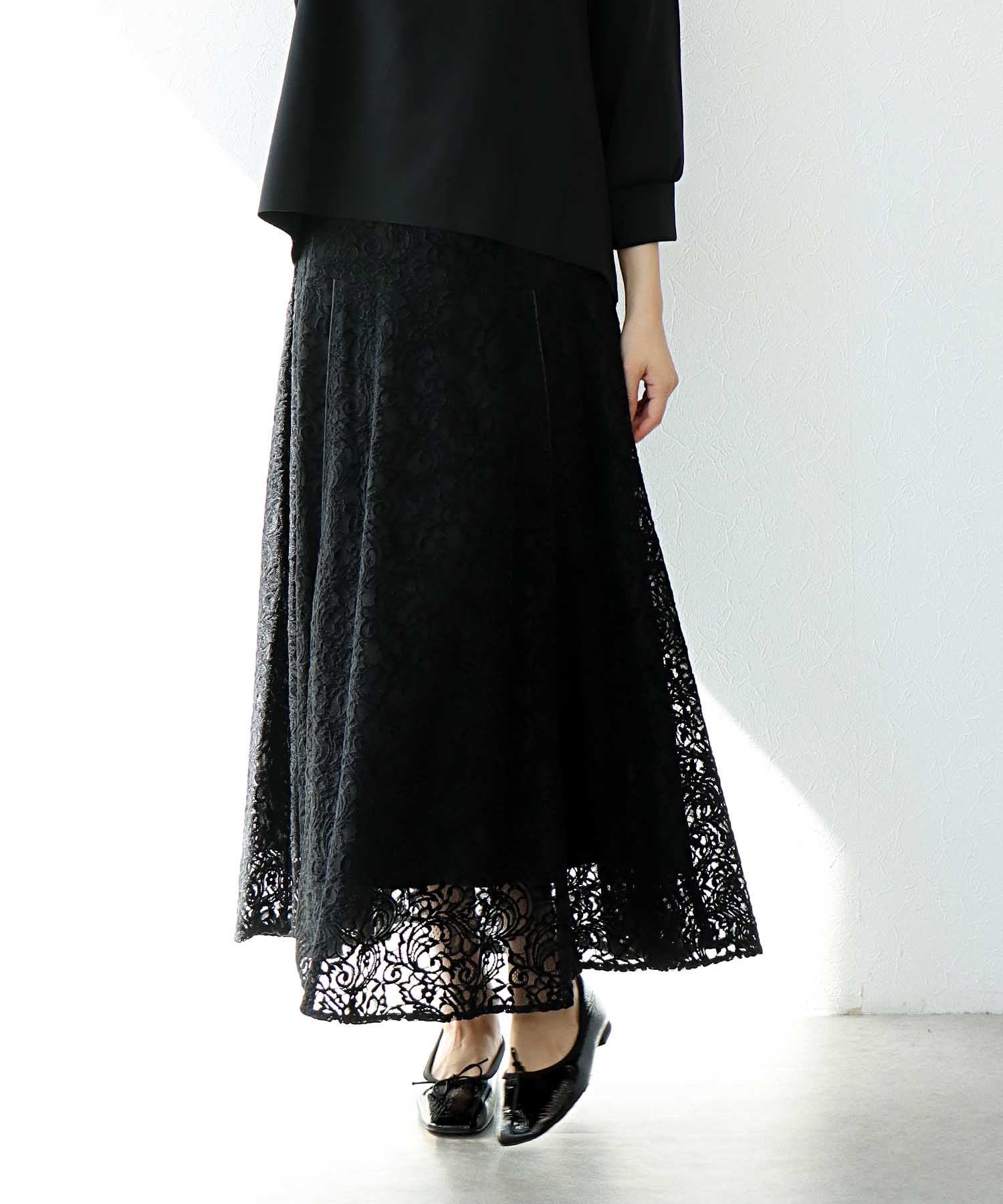 モールカットレースフレアスカート