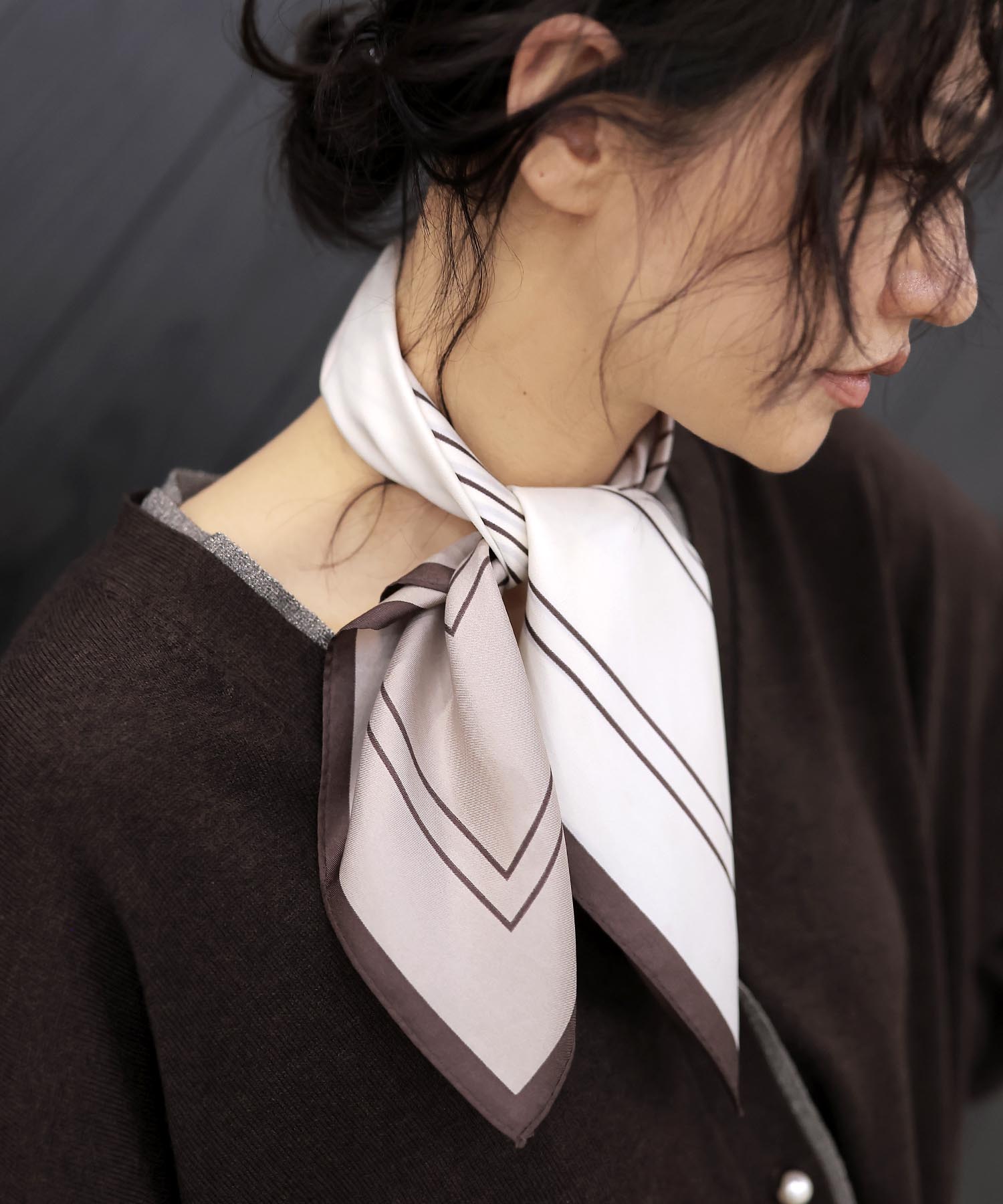 首に巻いてもごわつかず、程よいツヤが上品さを演出します。