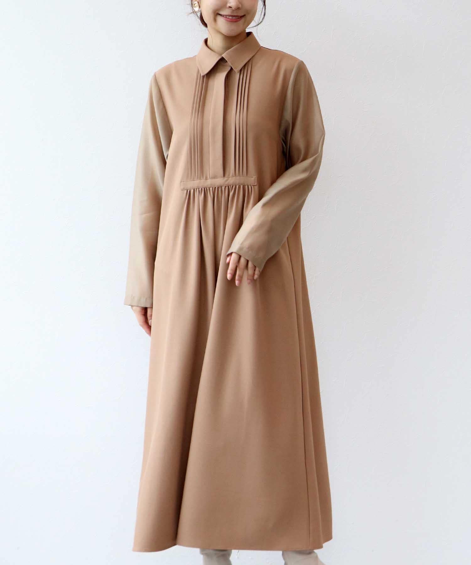 繊細なシアースリーブと、フロントにあしらったピンタックが上品なアクセントを添えるワンピース。