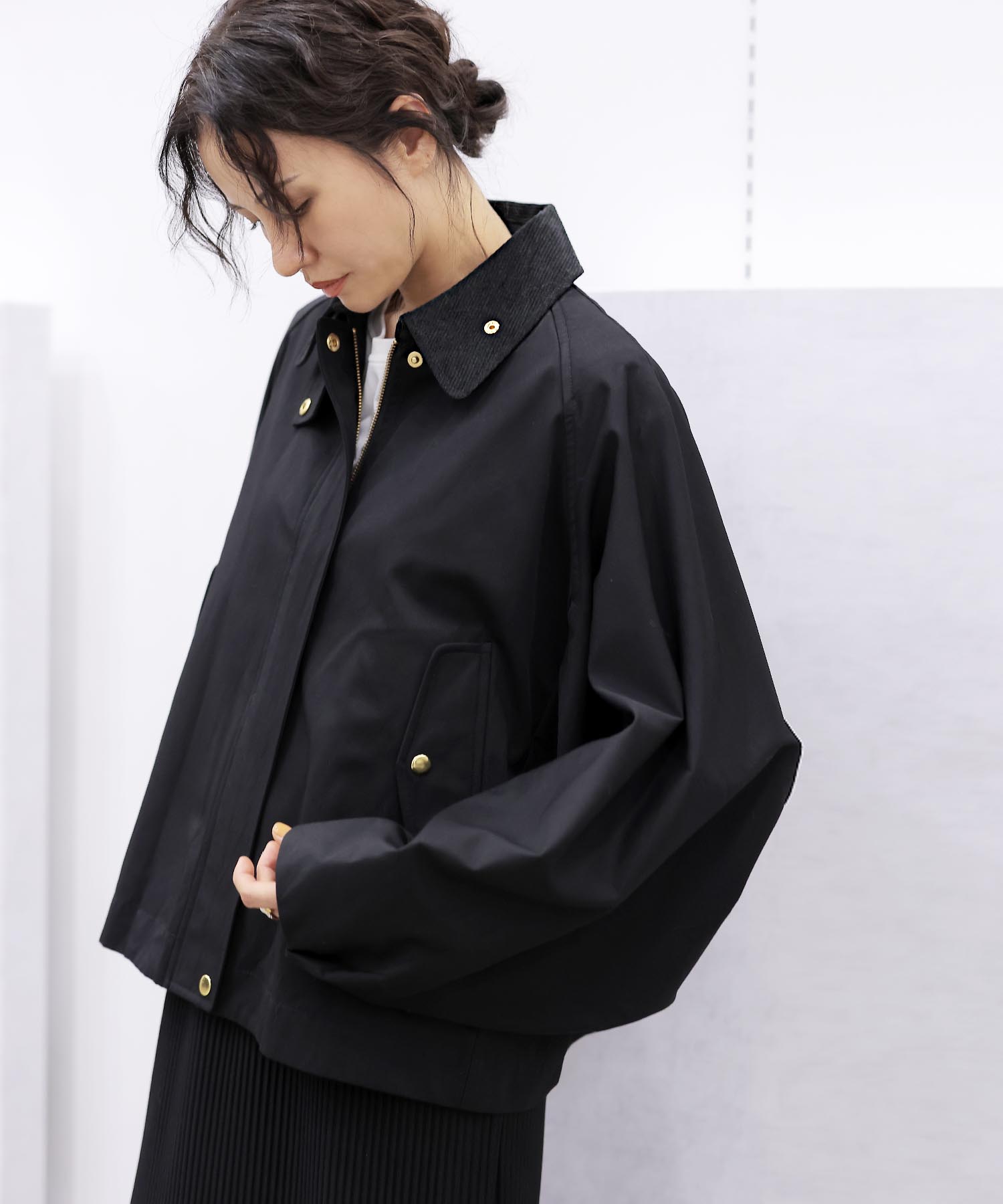シンプルなブルゾンに、コーデュロイ素材の衿を効かせたシーズンライクな1枚。