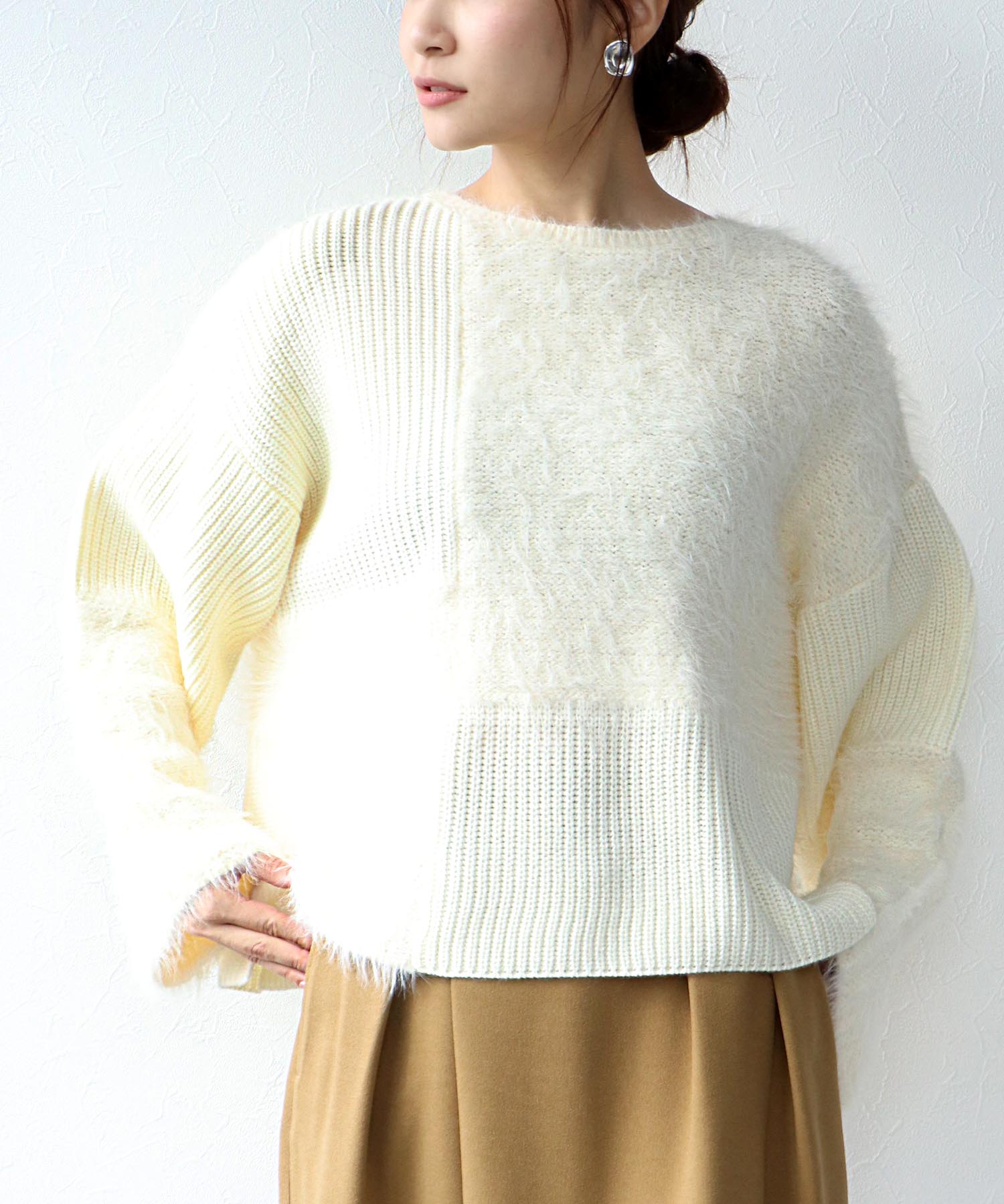 異なる編地を組み合わせた表情豊かなMIX編みニット。