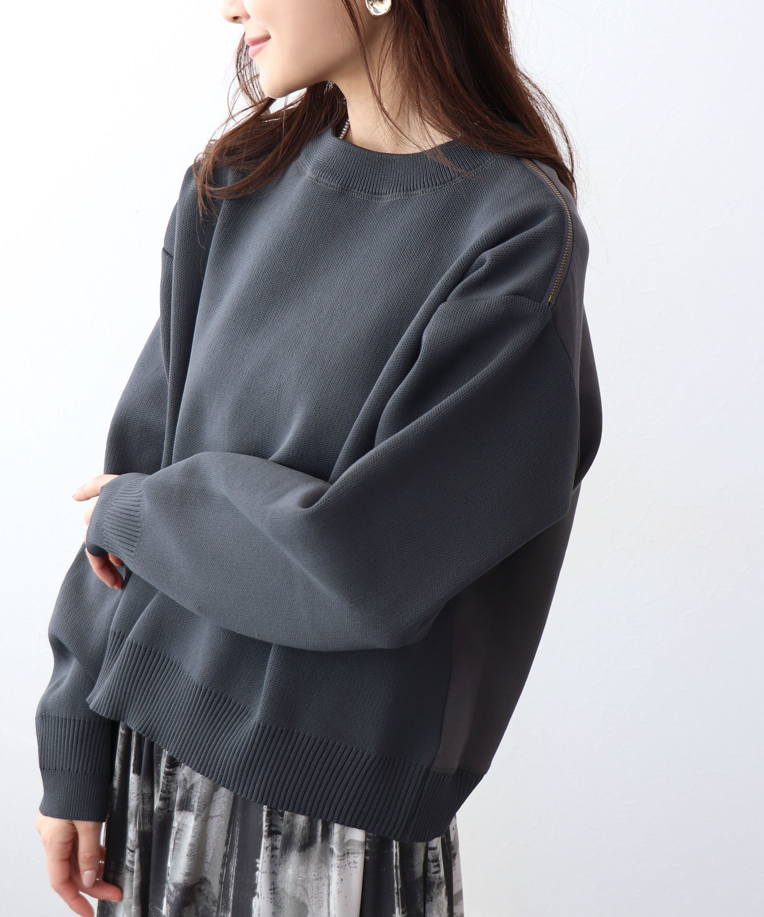 ニットとダンボール素材を組み合わせたプルオーバー。