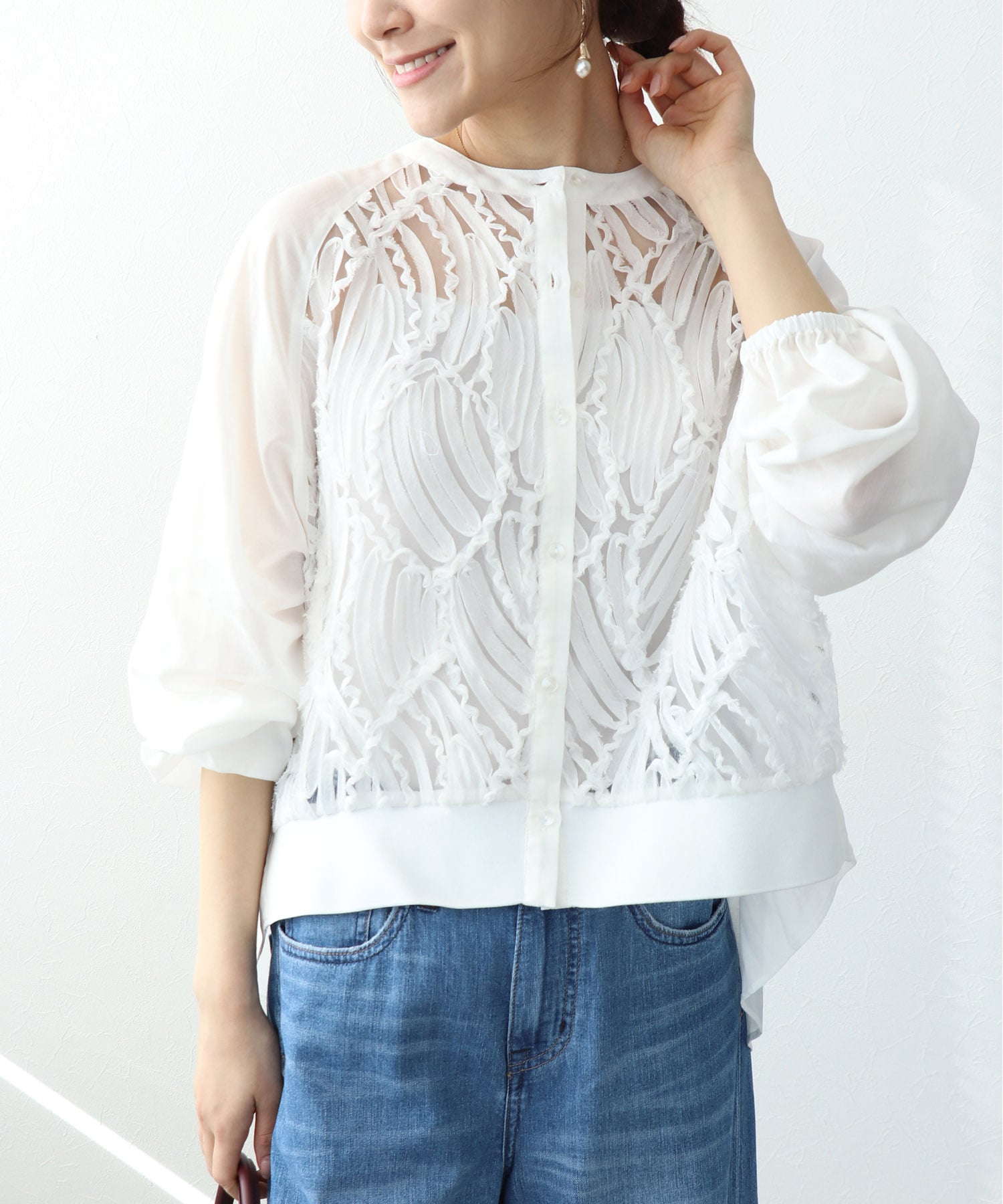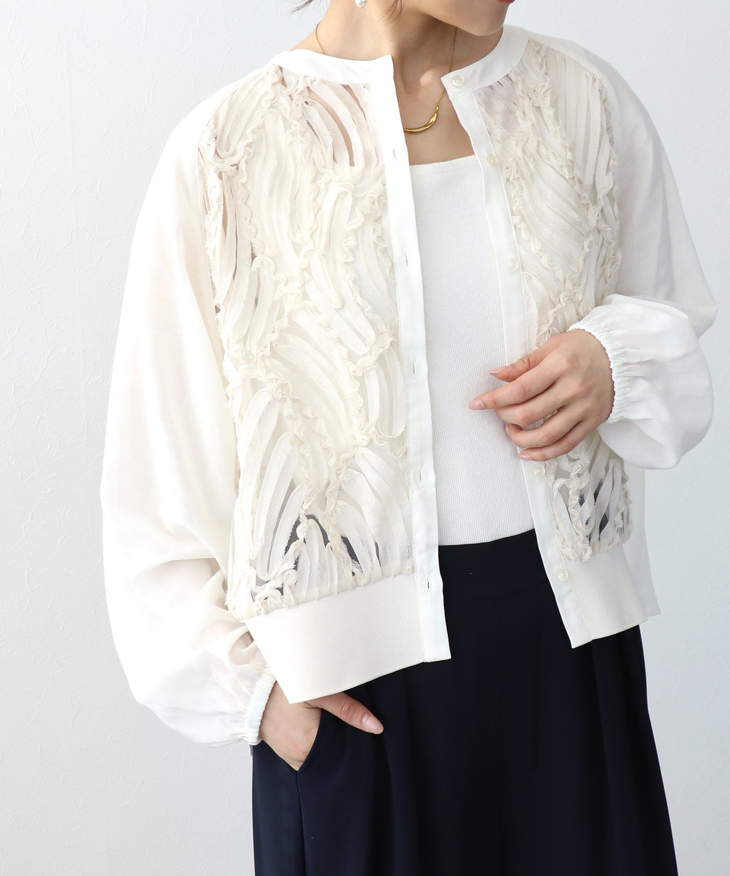 本製品はデリケートな素材を使用していますので過度の摩擦や引っかけ、引っぱりなどを避け、お取扱いにはご注意下さい。