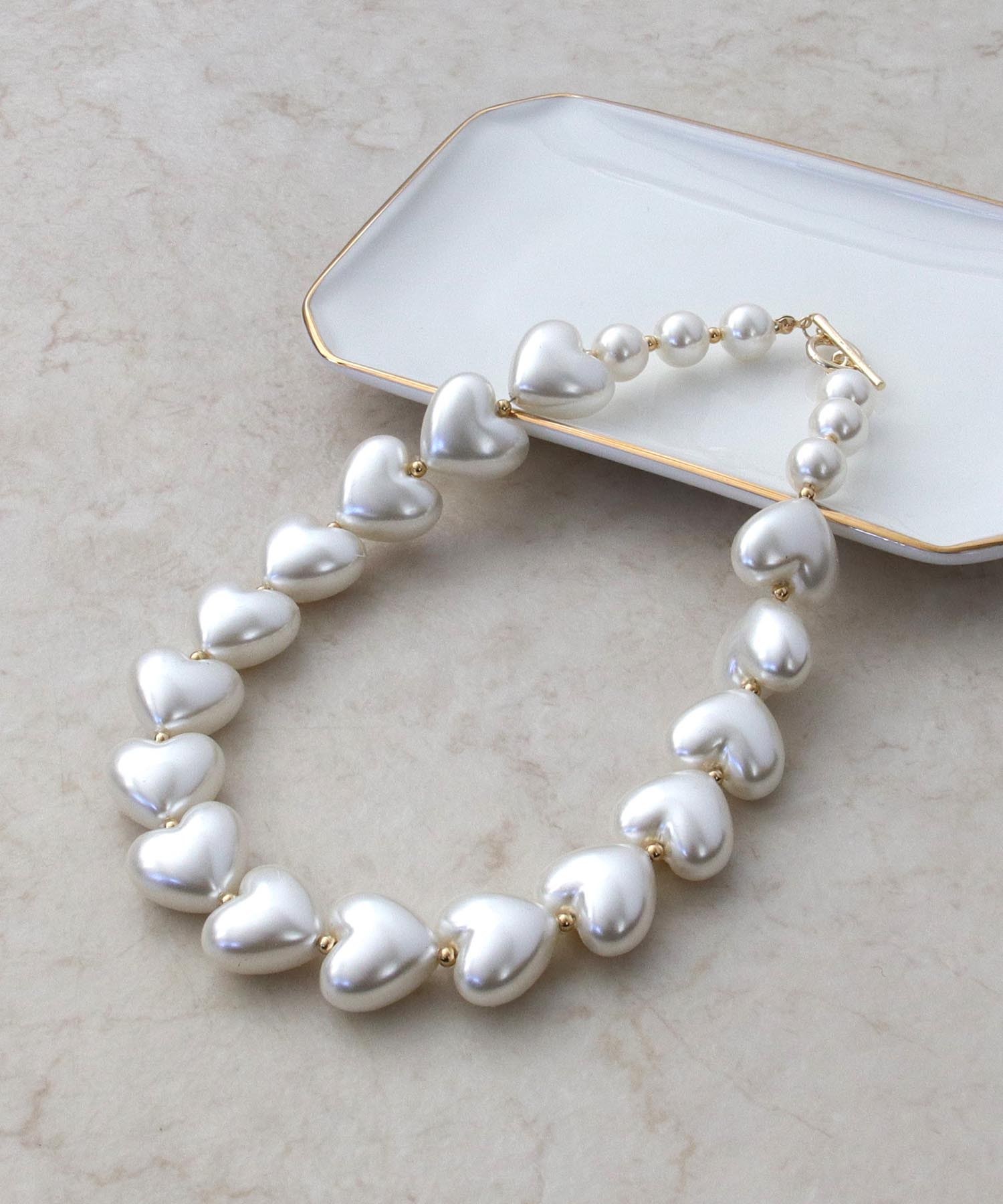 ハートモチーフが連なったパールネックレス。