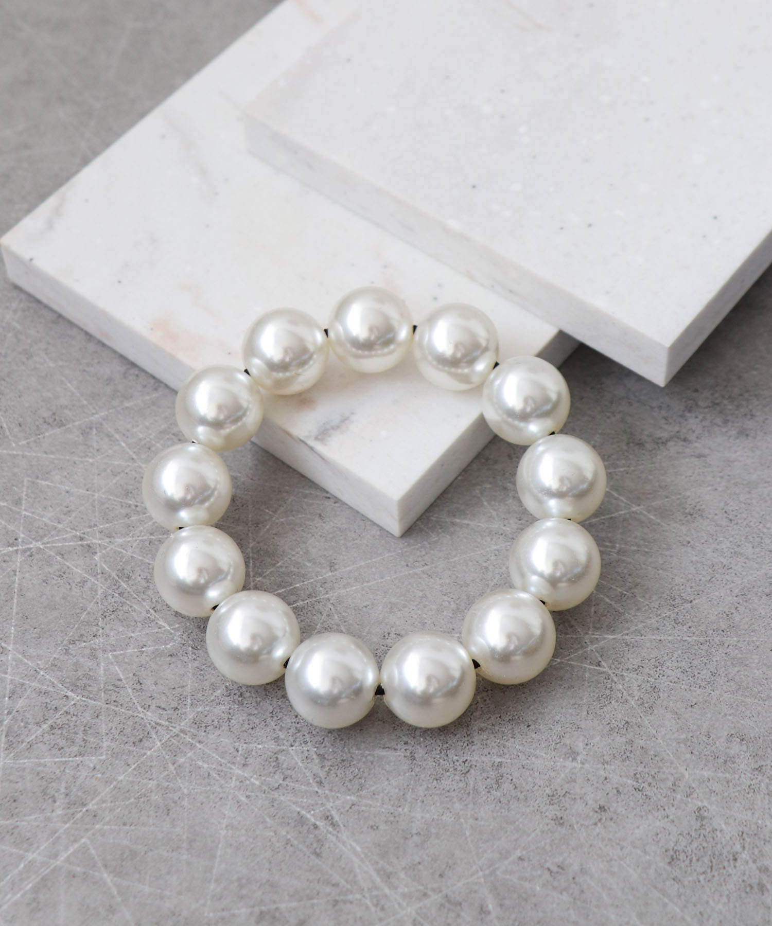 大玉が手元のアクセントとなるパールとメタルのゴムブレス