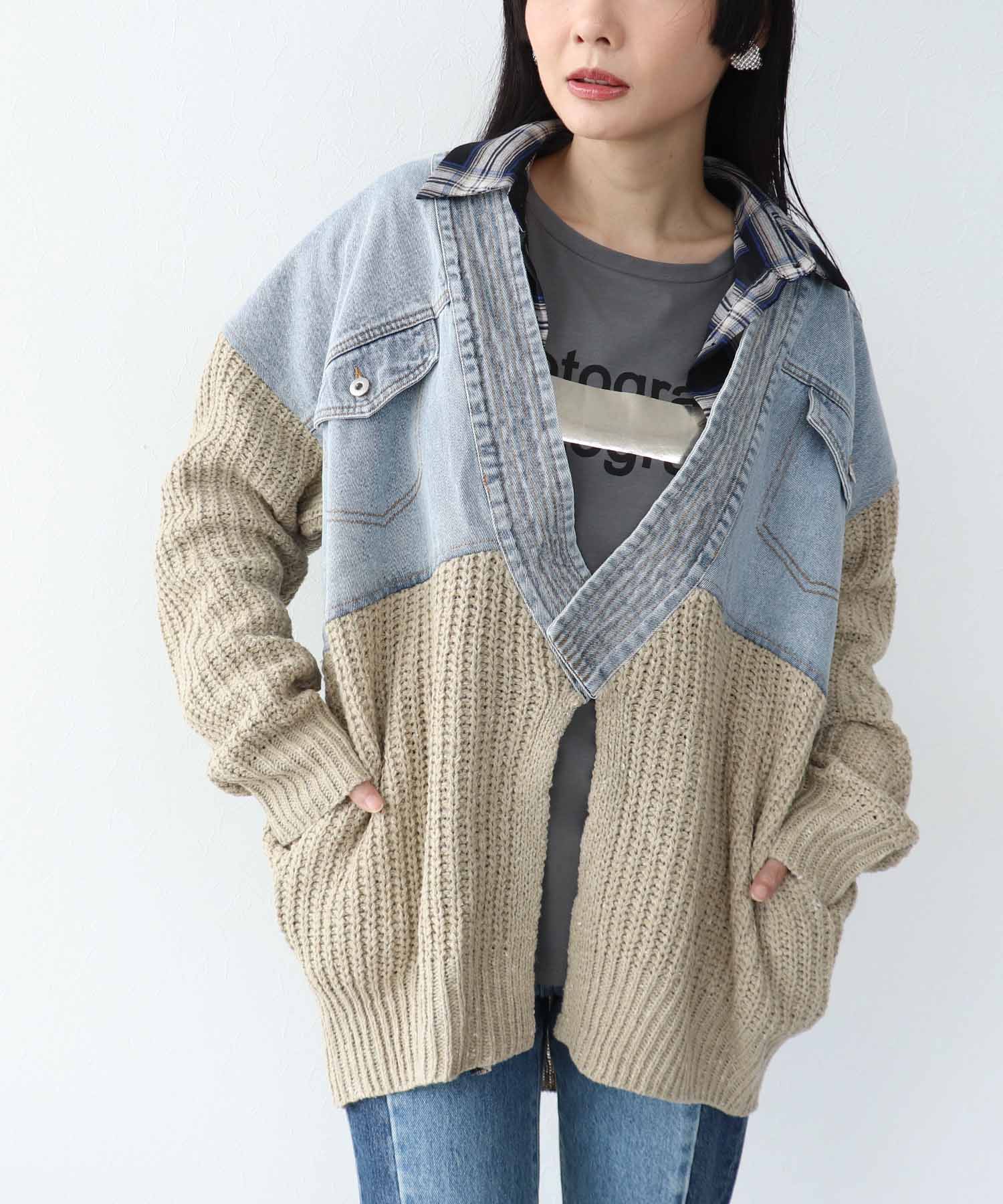 ニット部分: アクリル60%, ポリエステル30%, 毛10%, 布帛部分: 綿100%