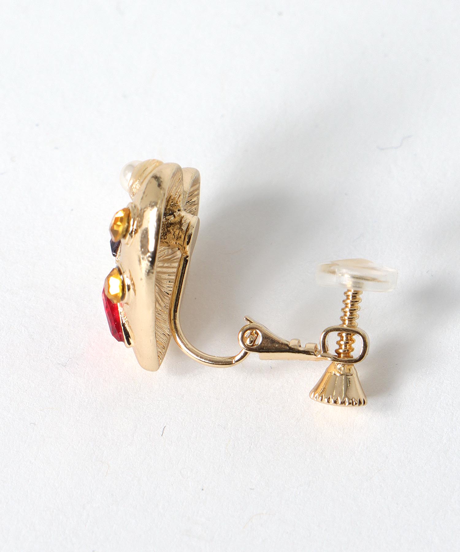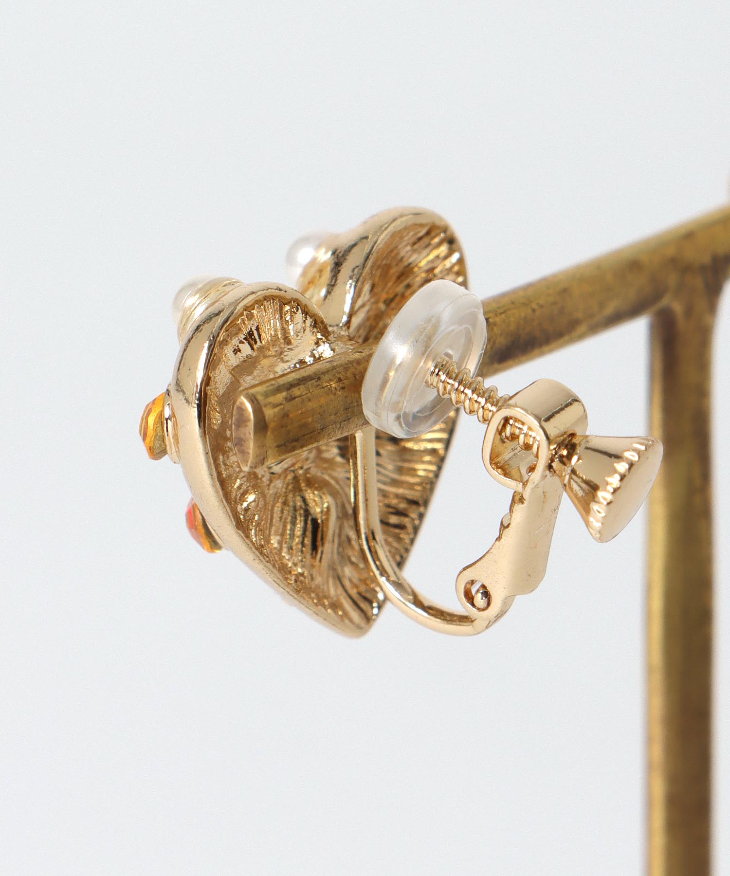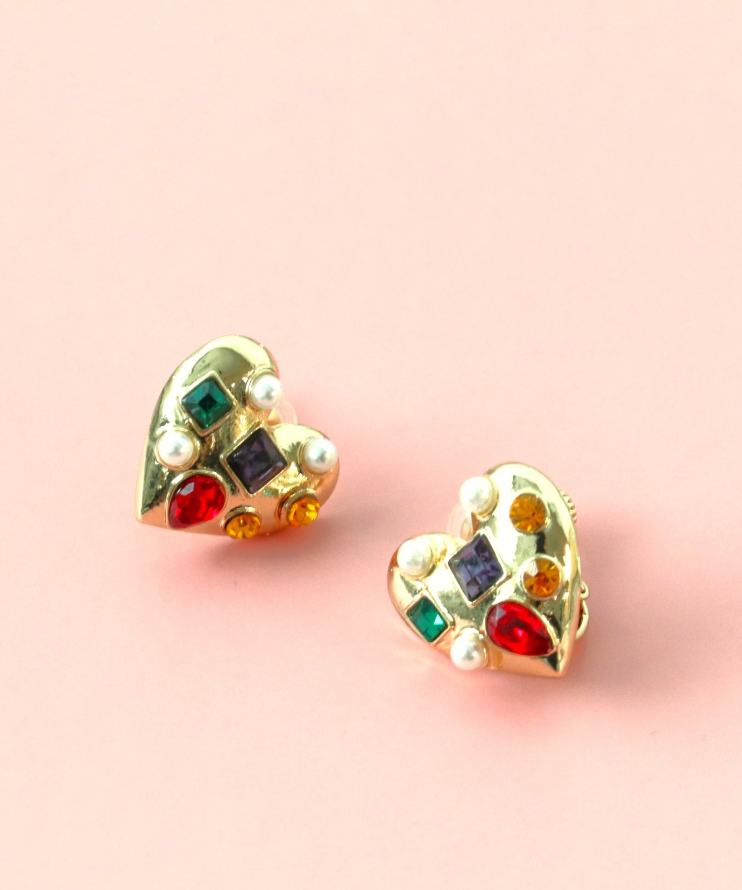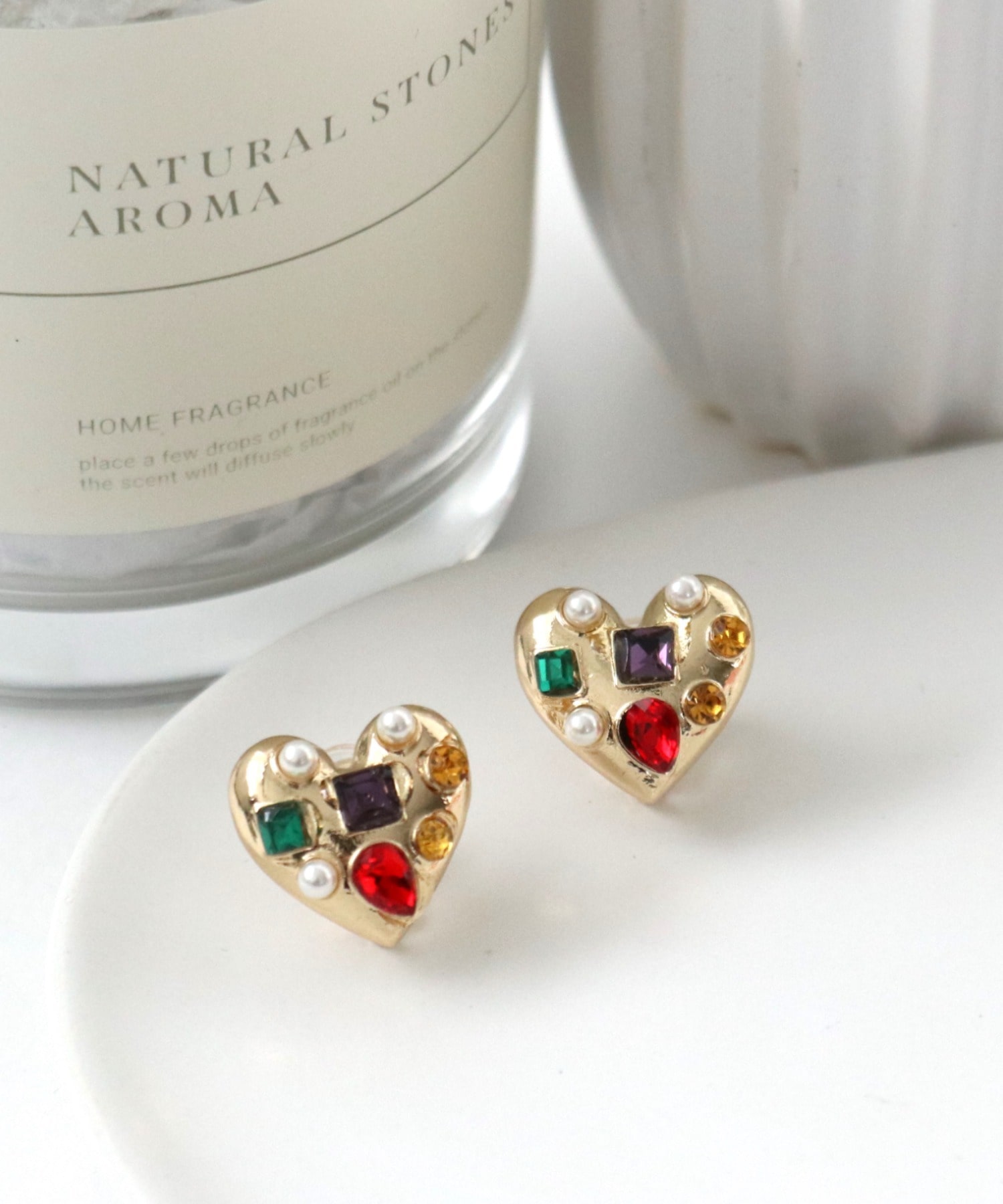 カラービジュやパールを大胆に散りばめた主役級のハートイヤリング?