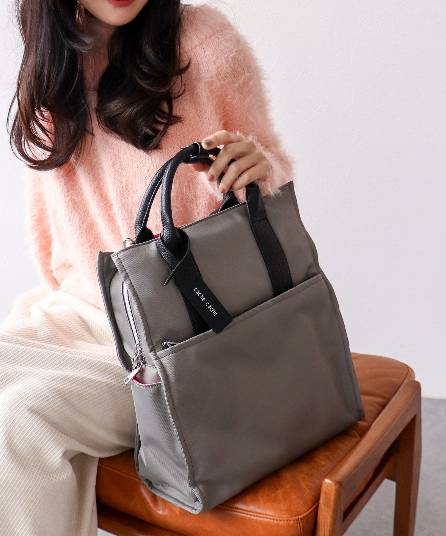 トートバッグ、肩ひもを片だけつけて肩掛けショルダー、そしてリュックサックとして3WAYで使って頂けます。