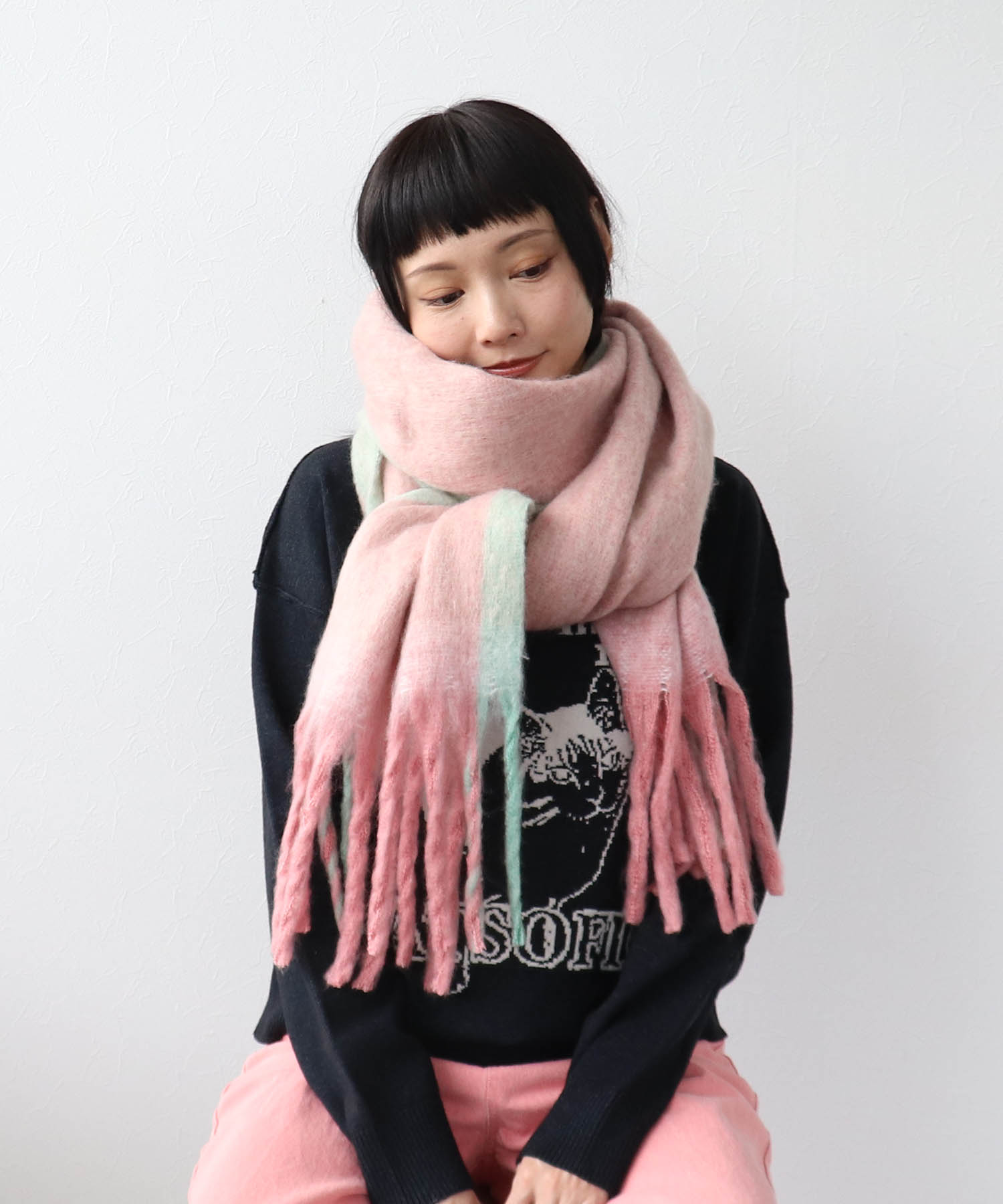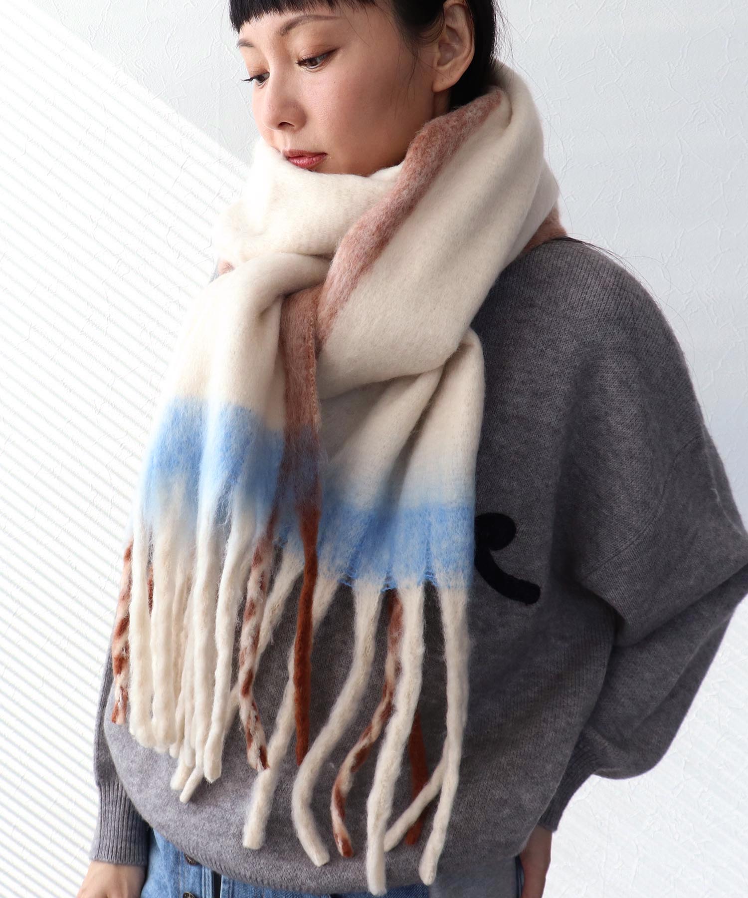 ふんわりとした彩り豊かなオーラを放ってくれるフレーム配色のマフラー