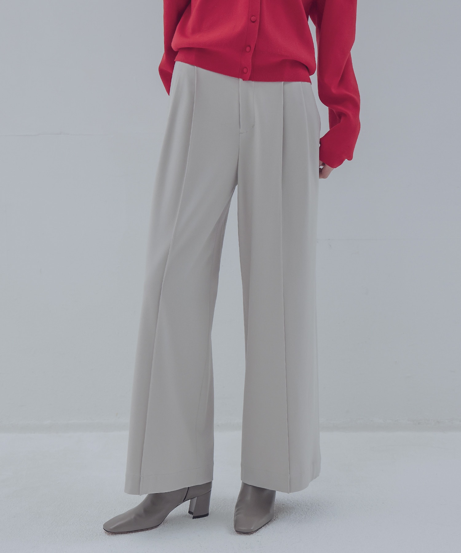 ピンタックで脚長効果抜群なパンツ。
