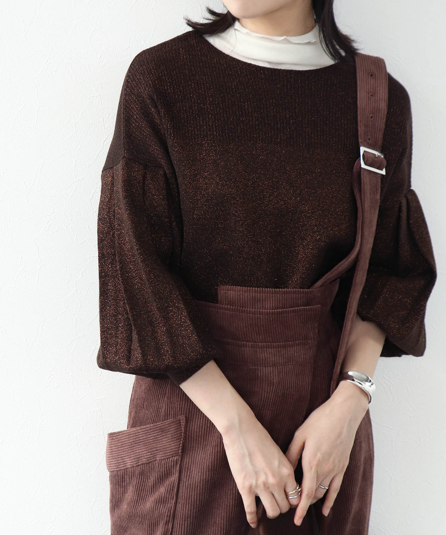 ラメ糸袖プリーツリブニットを使ったコーデになります!