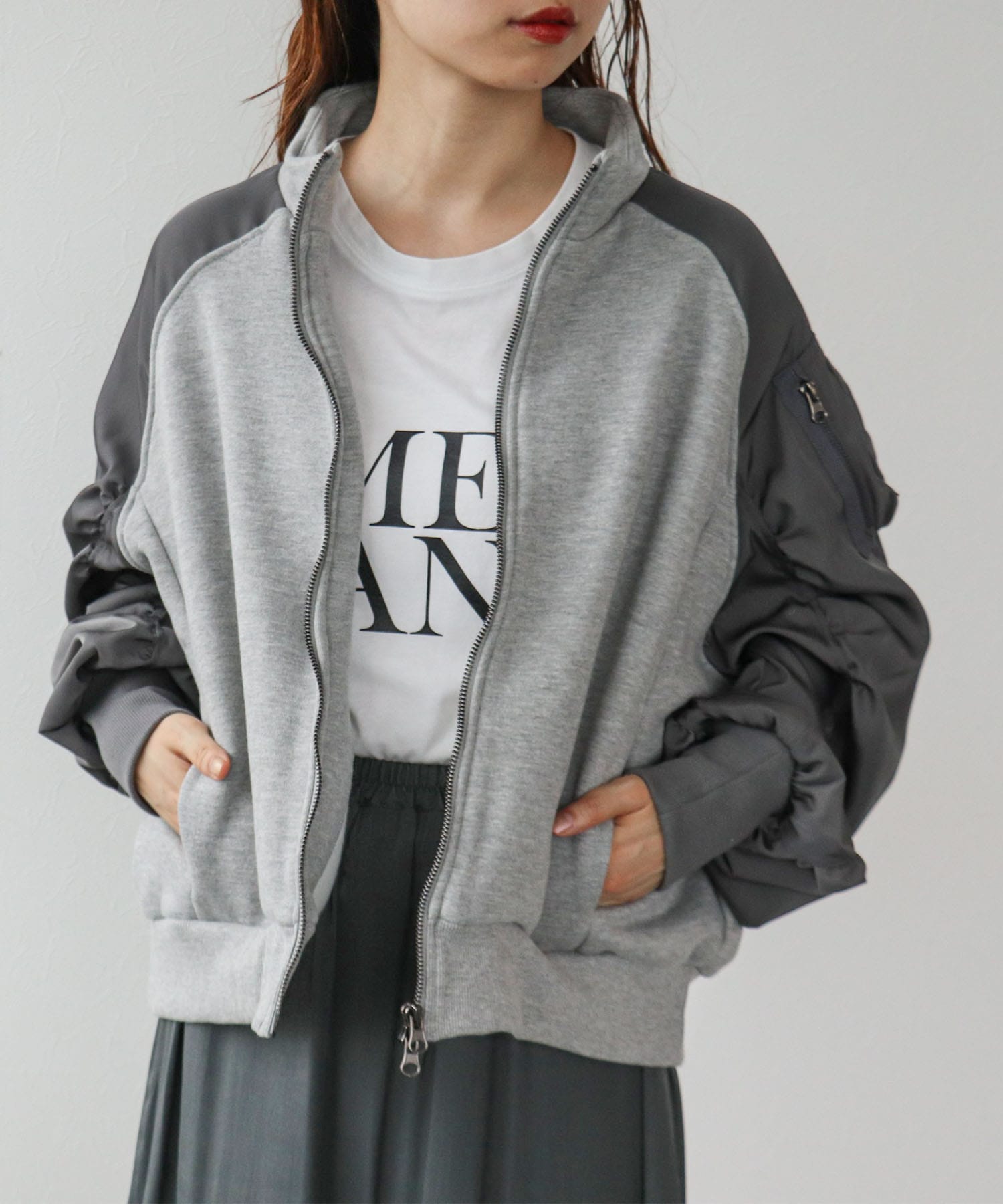 スエット×MA-1の異素材デザインなので一枚で様になります◎