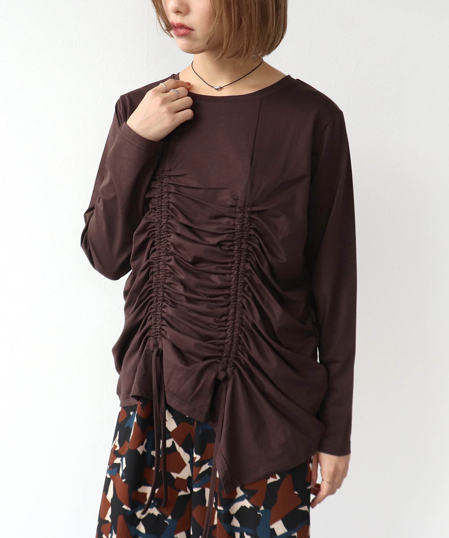 ギャザーの絞りを変えてアシメで着るのがお洒落⭐